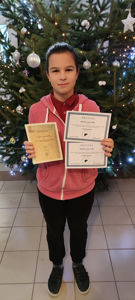 Gratulálunk Hegedűs Anna Judit 8. osztályos tanulónknak, aki az Andrássy György Katolikus Közgazdasági Technikum és Gimnázium magyar és német nyelvi versenyén is I. helyezést ért el. Továbbá a Gárdonyi Géza Ciszterci Gimnázium szépkiejtési versenyén is színvonalas eredményéért emléklapban részesült.