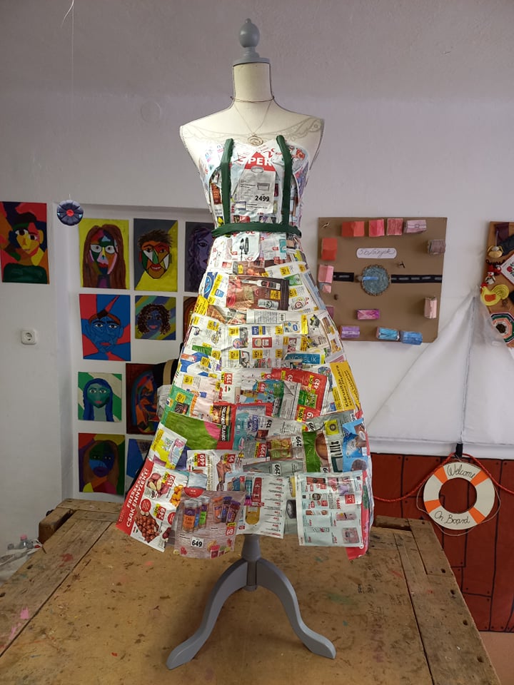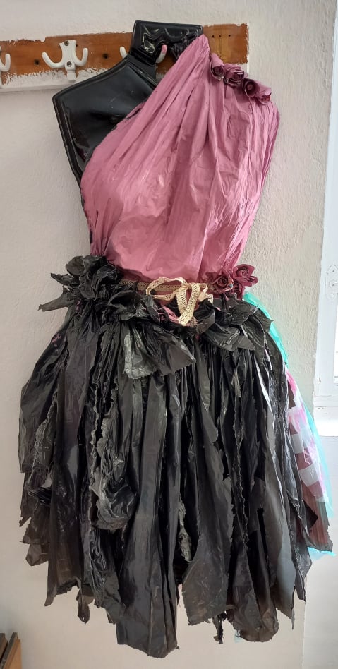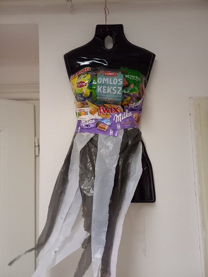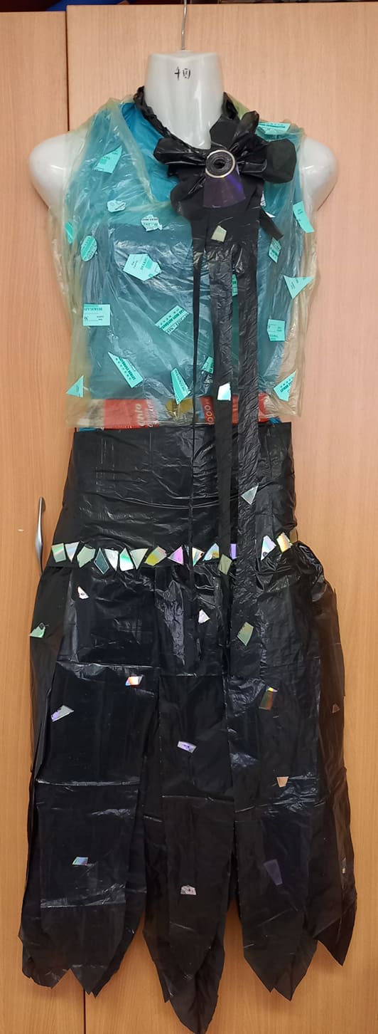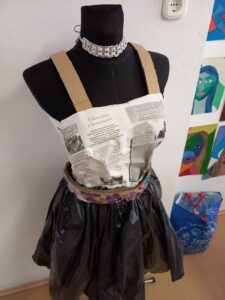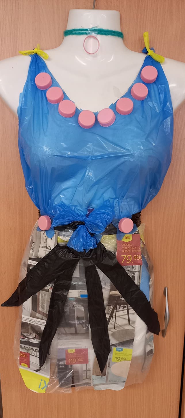 A 8. osztályban az újrahasznosításról tanultunk technika órán, ezért mi is újrahasznosítottunk. Szemétből alkottunk ruhákat mint egy igazi divattervező!!!