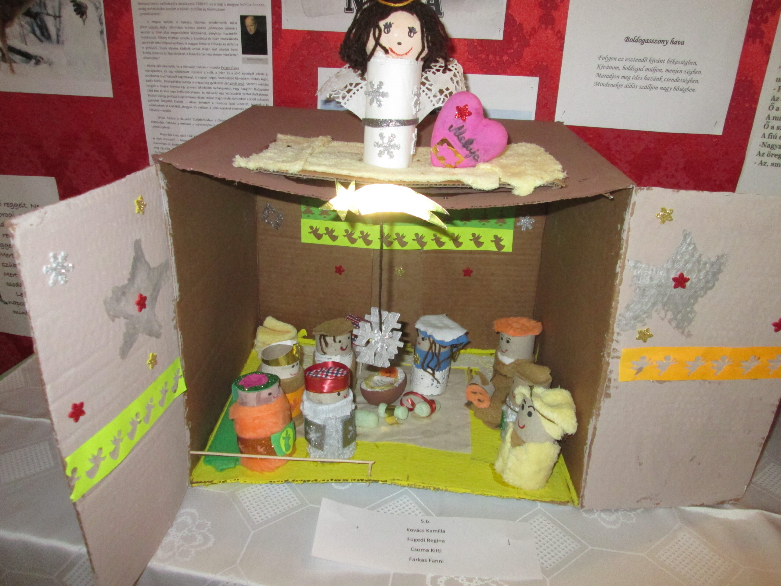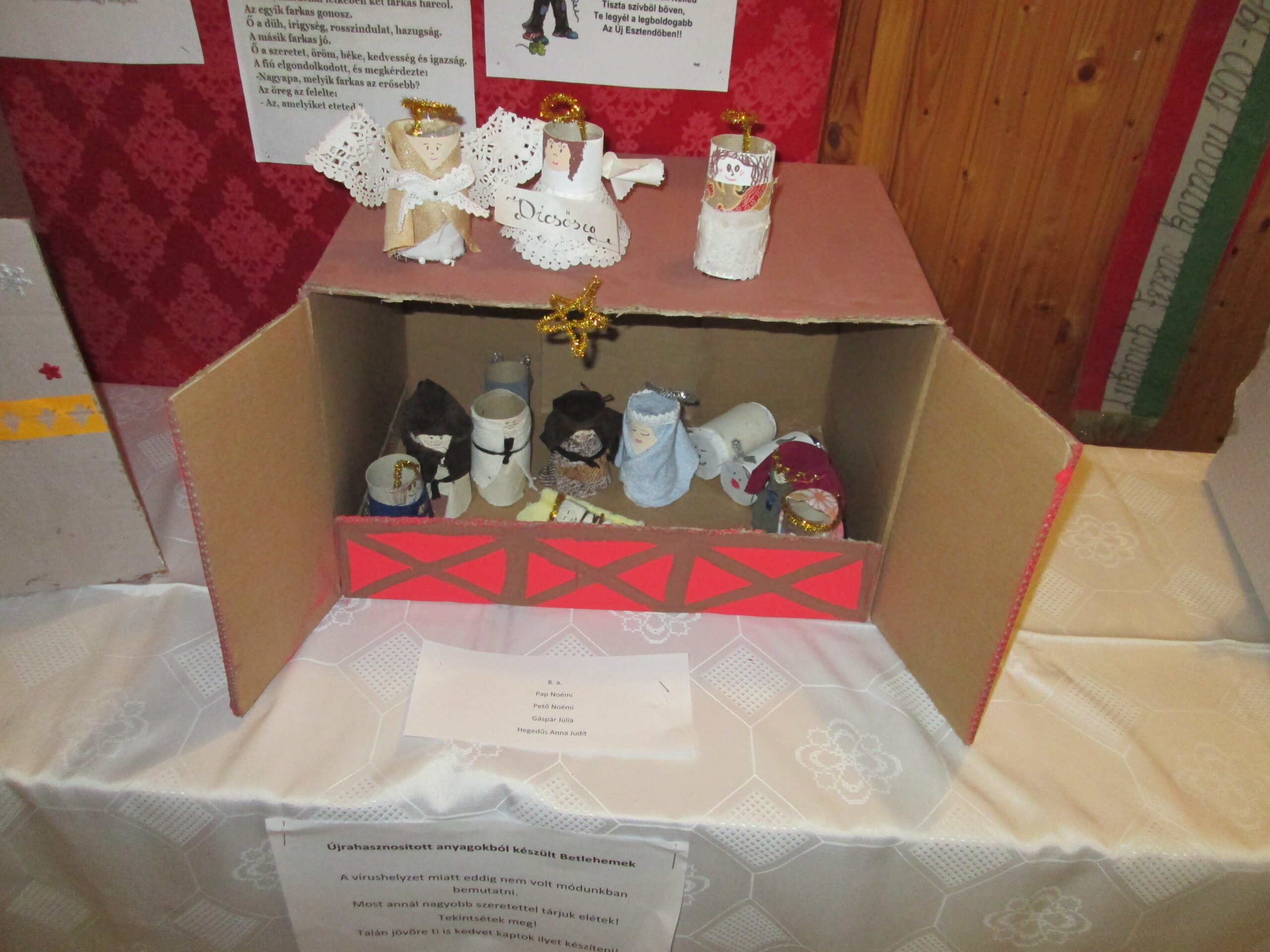 Iskolánk tanulói, a rajzszakkörösök elhatározták, hogy az újrahasznosítás jegyében a karácsonyfa alá betlehemet készítenek. A különböző anyagokat, technikákat felhasználva elkészültek az alkotások. Csoportosan dolgoztak és minden egyes emberi, állati alakok újrafelhasznált anyagokból csinálták. Sajnos a vírushelyzet miatt nem állt módunkban karácsonyra elkészíteni a kiállítást, így most kerültek bemutatásra a gyerekek alkotásai. Reméljük, másoknak is felhívtuk a figyelmét arra, hogy egyszerű anyagokból is lehet hasznosat, szépet készíteni.