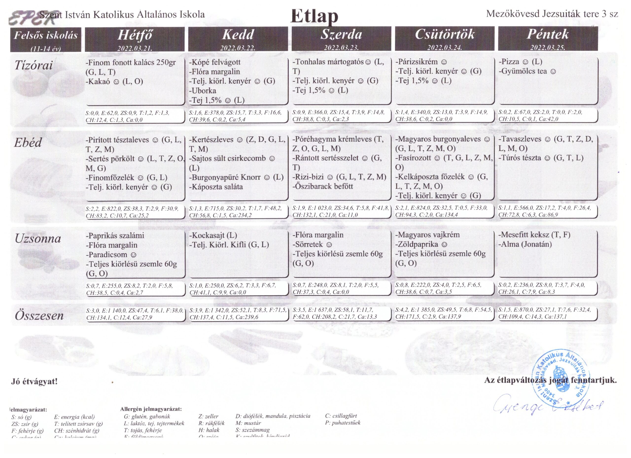 Az ételek allergén összetevőket tartalmazhatnak /glutén, tojás, szója, tej, diófélék, zeller, mustár, hal, szezámmag/