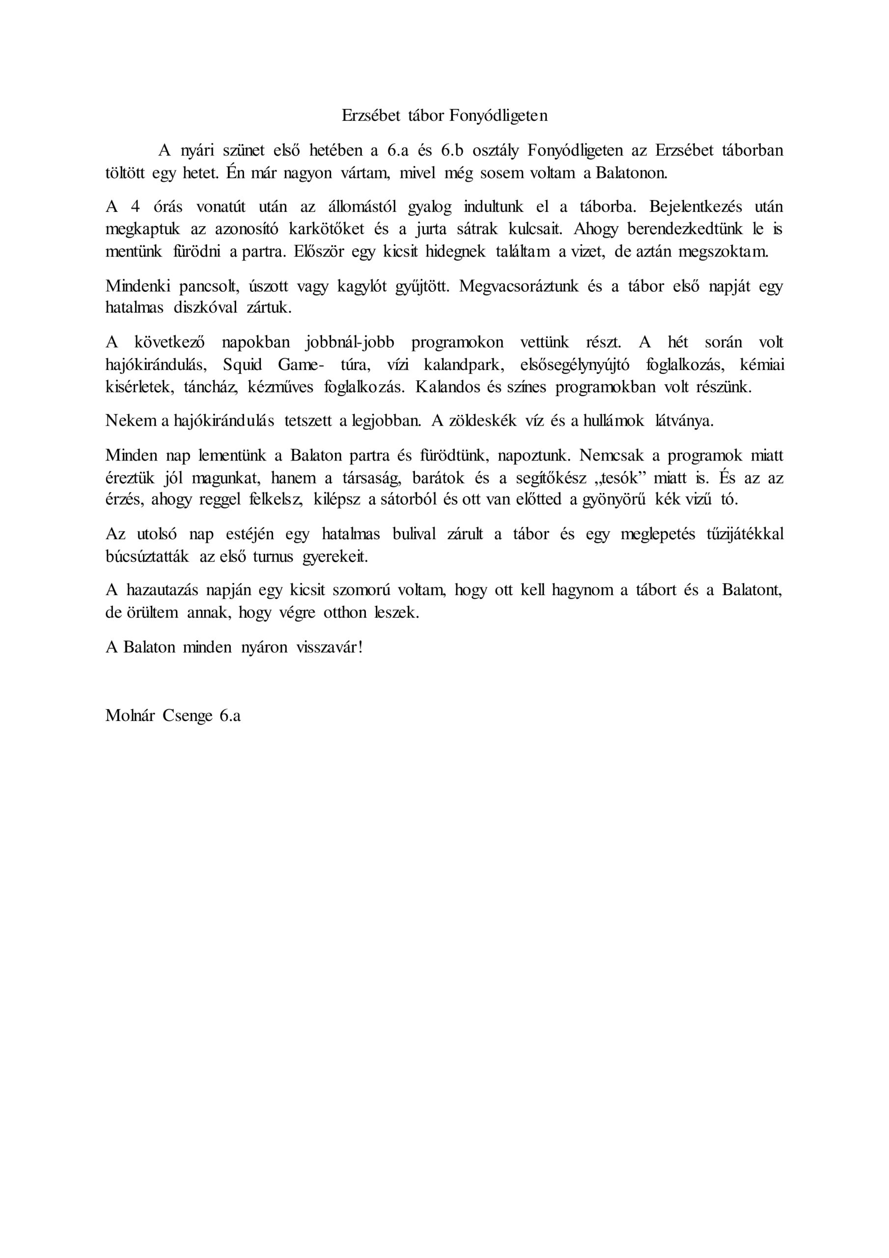 Erzsébet-tábori élménybeszámolók Szent István Katolikus Általános Iskola és Óvoda Közzétéve 2022-09-13 , Kiss Asztrik2022-09-13