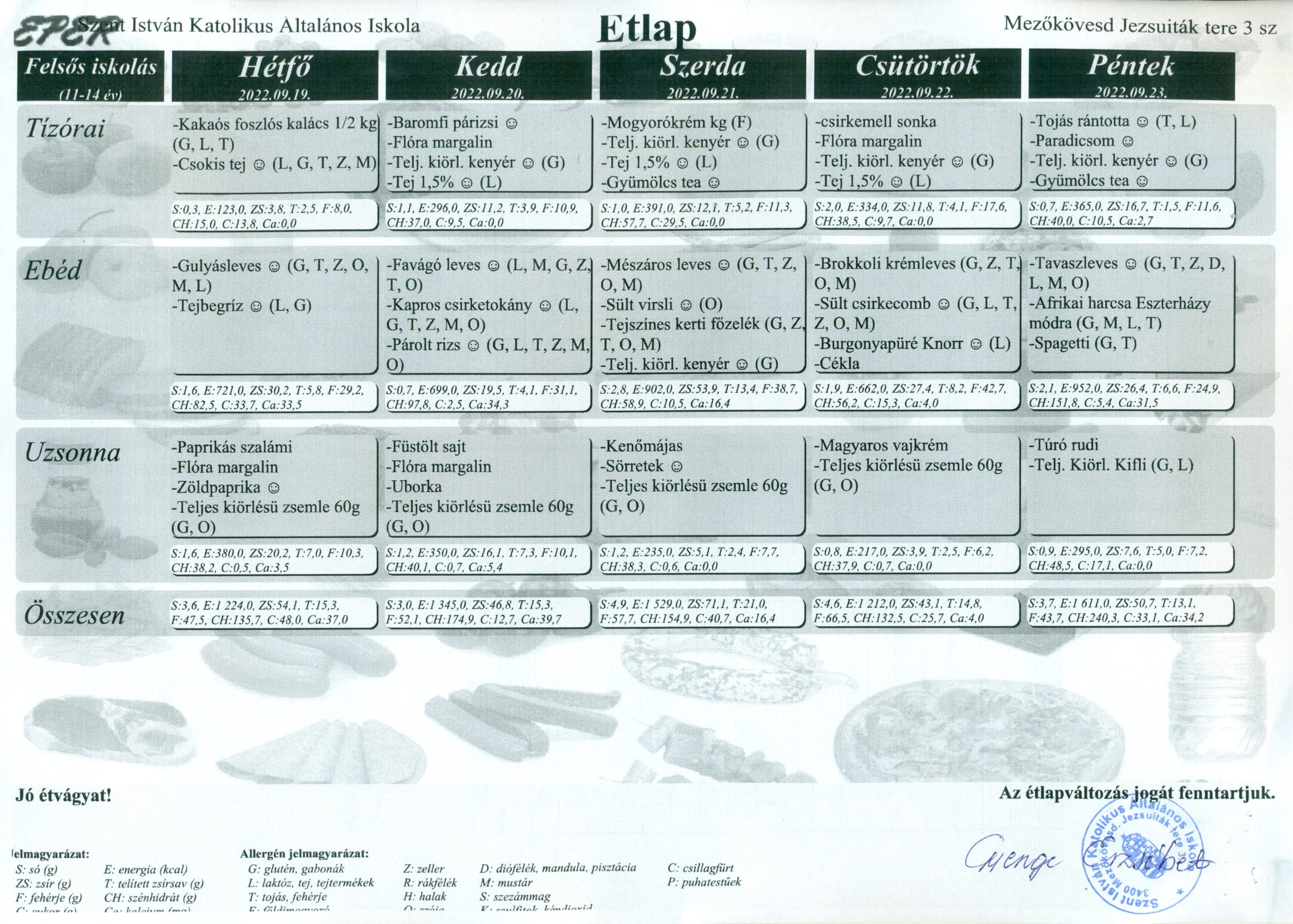 Az ételek allergén összetevőket tartalmazhatnak /glutén, tojás, szója, tej, diófélék, zeller, mustár, hal, szezámmag/