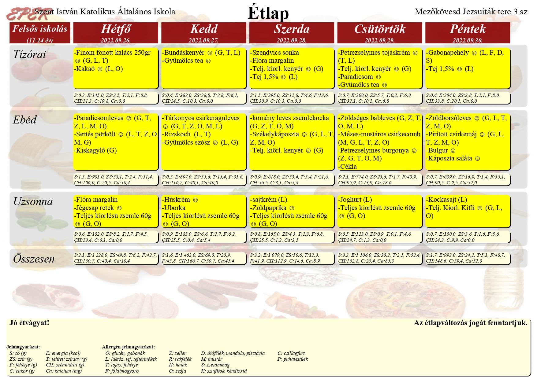 A nyersanyagellátástól függően az étlap változhat.