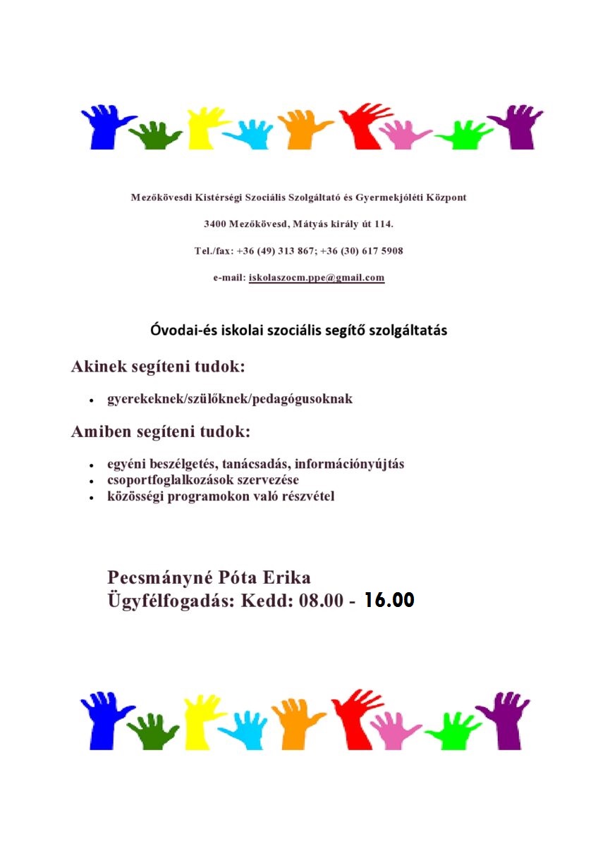 Óvodai-és iskolai szociális segítő szolgáltatás Szent István Katolikus Általános Iskola és Óvoda Közzétéve 2022-09-13 , Kiss Asztrik2022-09-13
