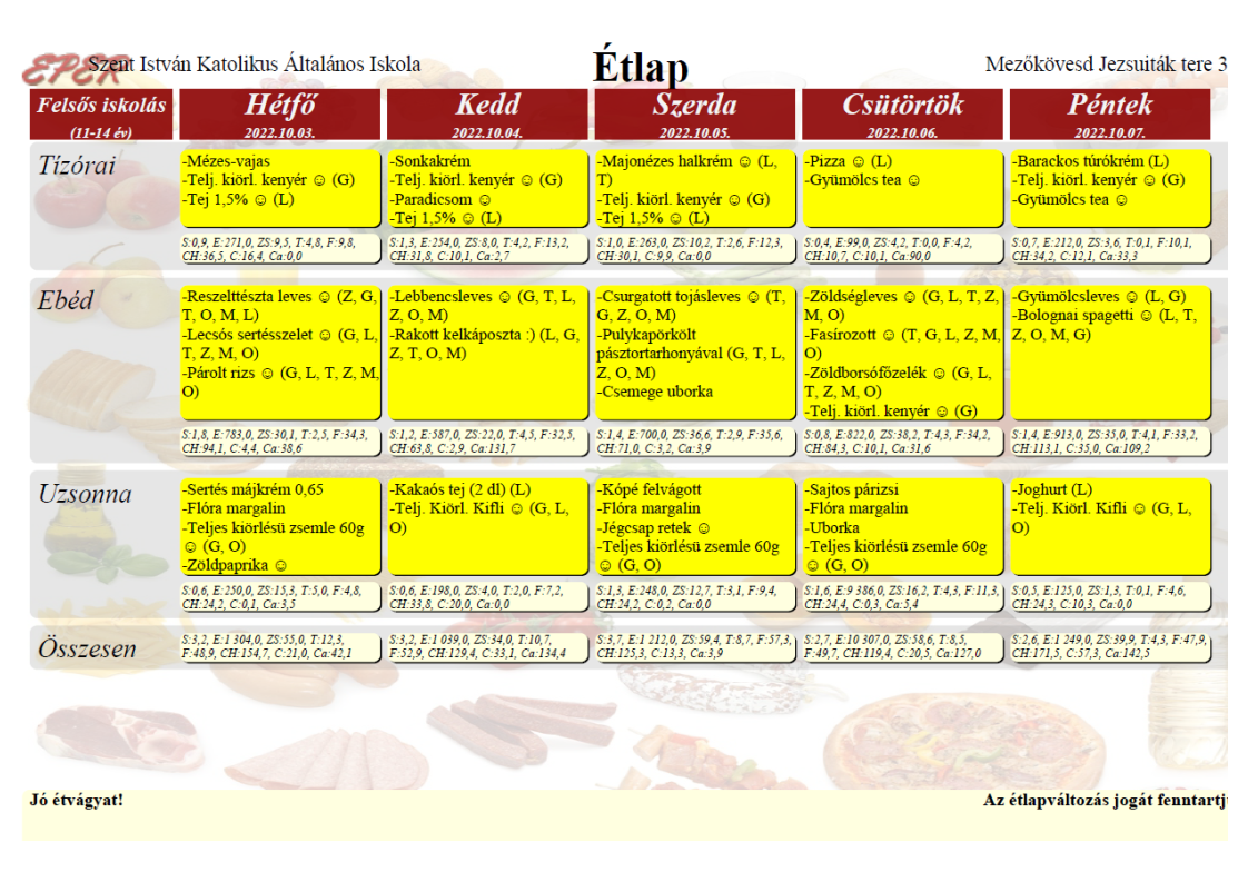 Heti étrend – 40. hét –