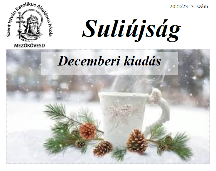 Suliújság Szent István Katolikus Általános Iskola és Óvoda Közzétéve 2022-12-13 , Kiss Asztrik2022-12-13 Suliújság-december