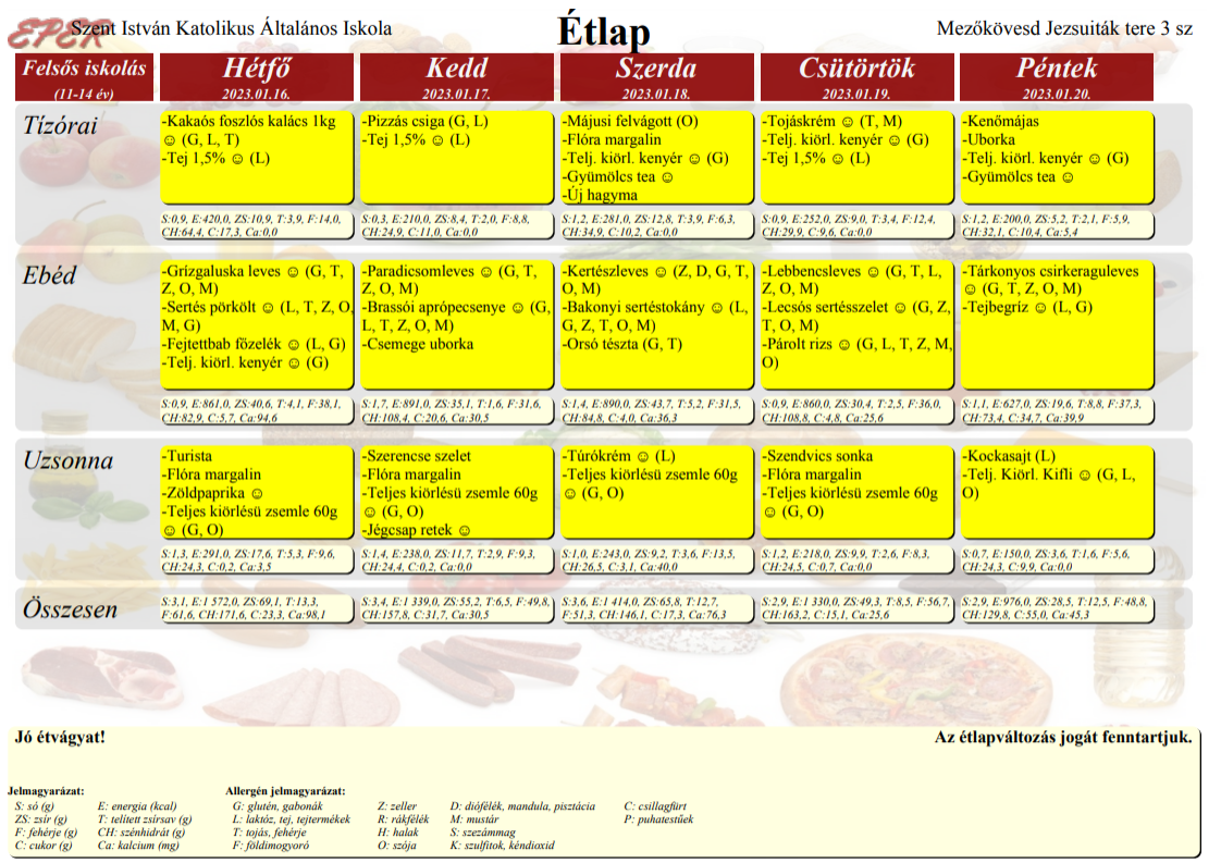 Kérjük az étkezési ill. elviteli szándékot hét elején, lehetőleg hétfőn jelezni, mert előfordulhat, hogy a későn leadott igényeket már nem tudjuk teljesíteni. Az étkezést az adott napon reggel 8:00-ig lehet lemondani.