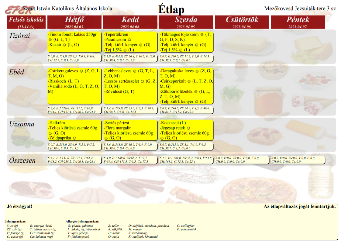A nyersanyagellátástól függően az étlap változhat.
