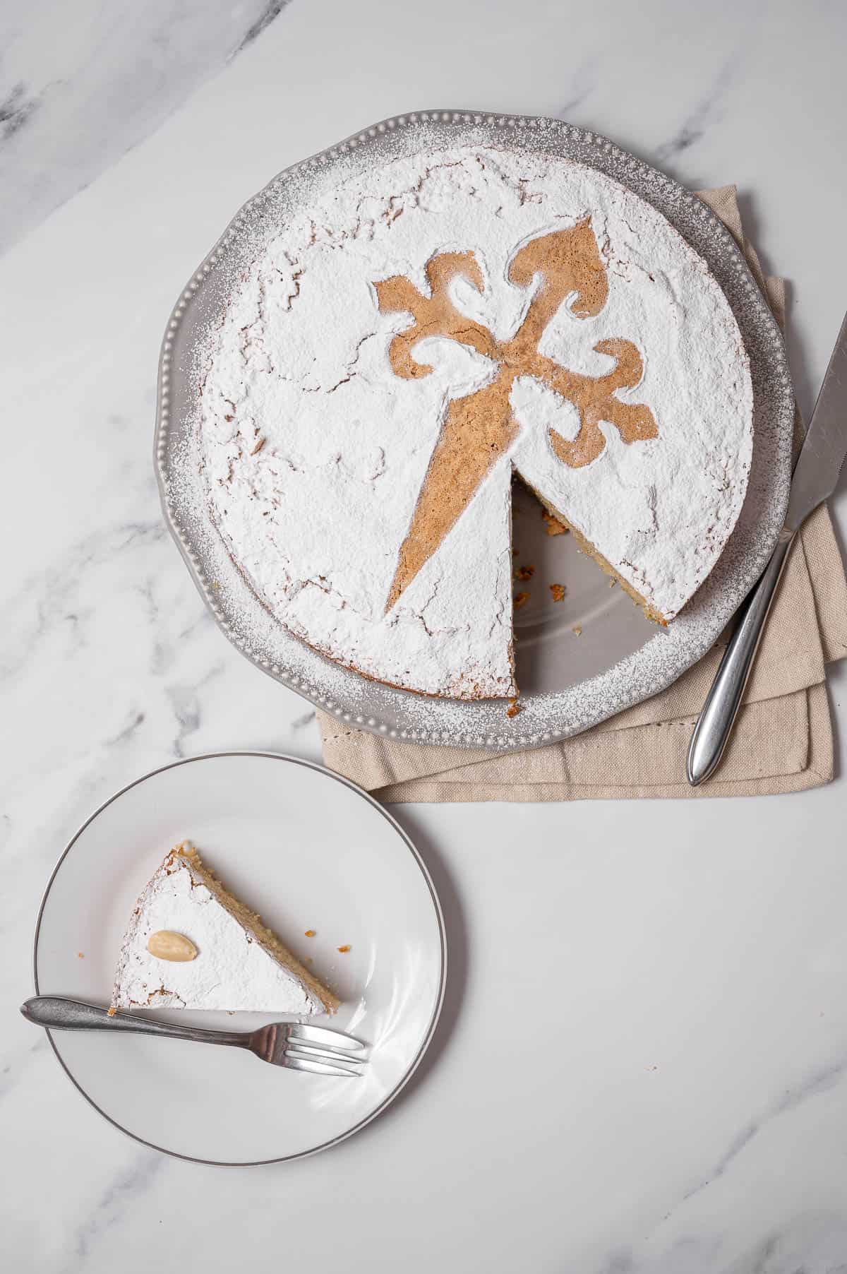 A tojásokat szétválasztjuk, a cukor egyik felével habosra verjük a fehérjét, a másik felével a sárgáját. A narancs- és citromhéjat, a sót és fahéjat belekeverjük a mandulalisztbe majd fokozatosan adagolva, óvatosan összeforgatjuk a három összevetőt (fehérje, sárgája, lisztes keverék). Kivajazott, kilisztezett tortaformába öntjük és 180 fokon kb 30 percig sütjük. Érdemes a tűpróbát elvégezni a sütés végén. Miután kihűlt a torta, porcukorral hintjük be.