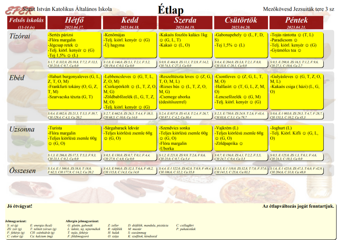 A nyersanyagellátástól függően az étlap változhat.