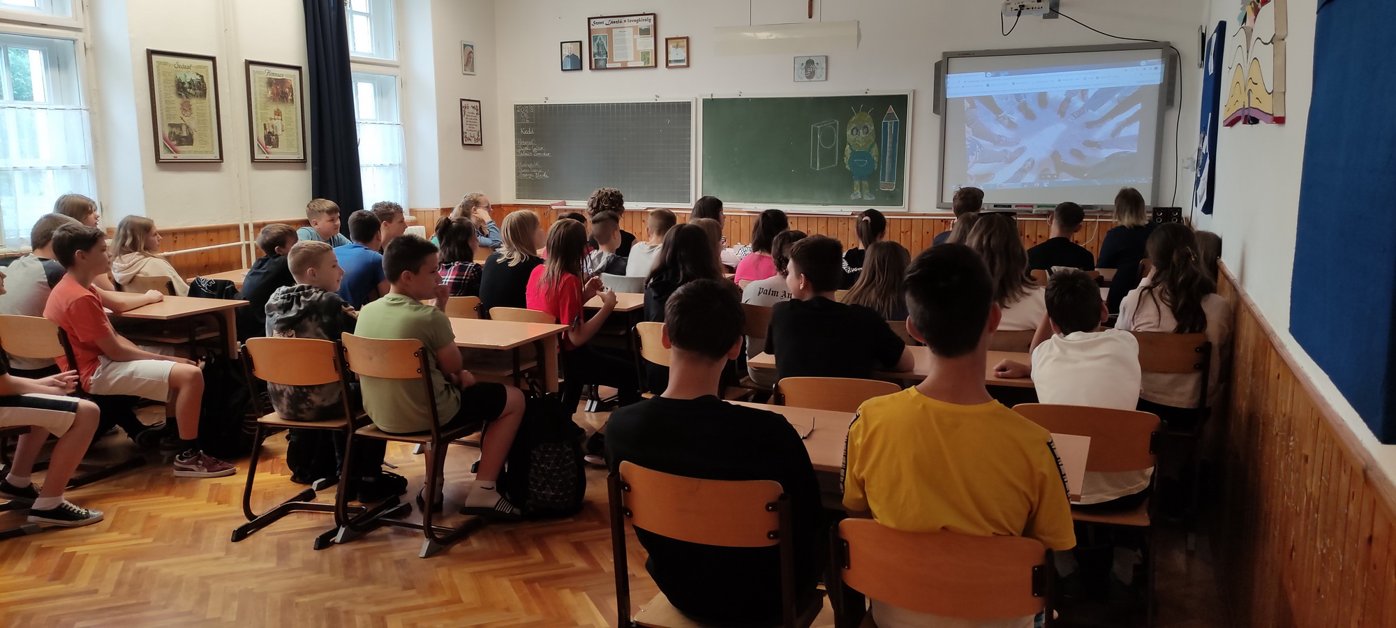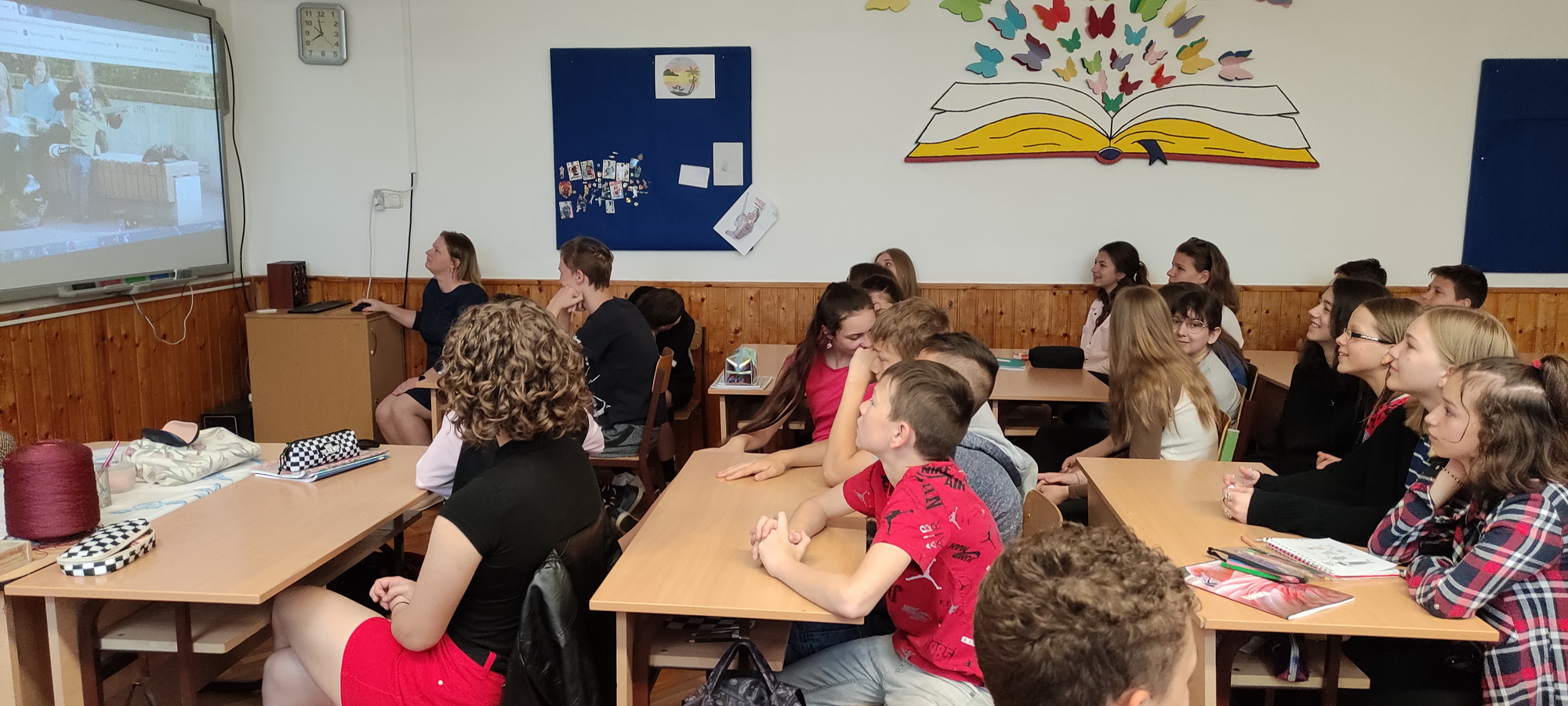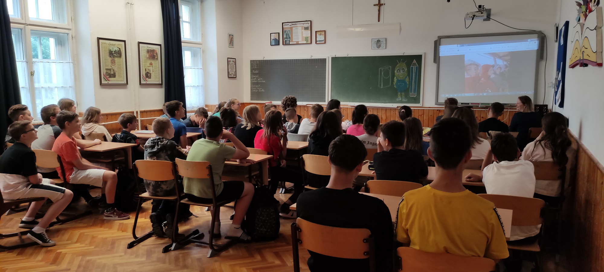 A kiránduláshoz tartozó értékelő órát egy összevont osztályfőnöki óra keretében tartottuk meg a hetedik osztályosokkal. Ezen diavetítés keretében elevenítettük fel a látottakat. A fényképekről ismét mindenkinek a kirándulás emlékei jöttek elő.