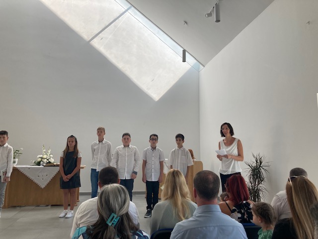 REFORMÁTUS TANÉVNYITÓ ISTENTISZTELET KÉPEKBEN Szent István Katolikus Általános Iskola és Óvoda Közzétéve 2023-09-14 , Kiss Asztrik2023-09-14 2023.09.10-én a református hittanos diákok és szüleik együtt vettek részt a tanévnyitó istentiszteleten a mezőkövesdi Református templomban. Konfirmandusok bemutatása Szavalat: Korpás Kamilla 3.c, Ledniczky Hanga 4.c