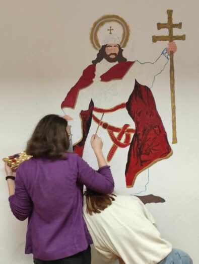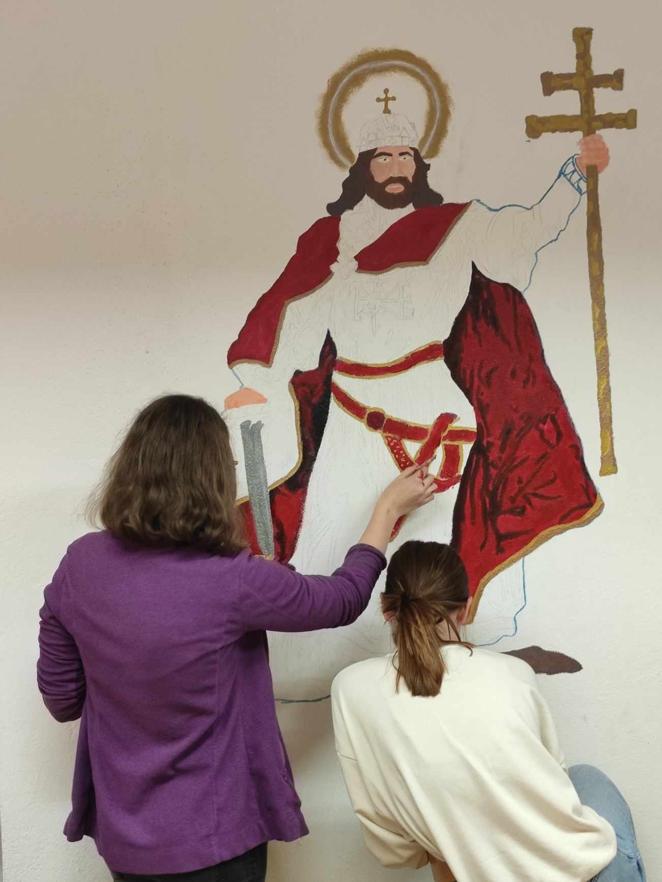 Szent Istvánt freskóját készítették el nagy gonddal, türelemmel. Hosszú ideig tartott, de kitartásuknak meglett az eredménye!