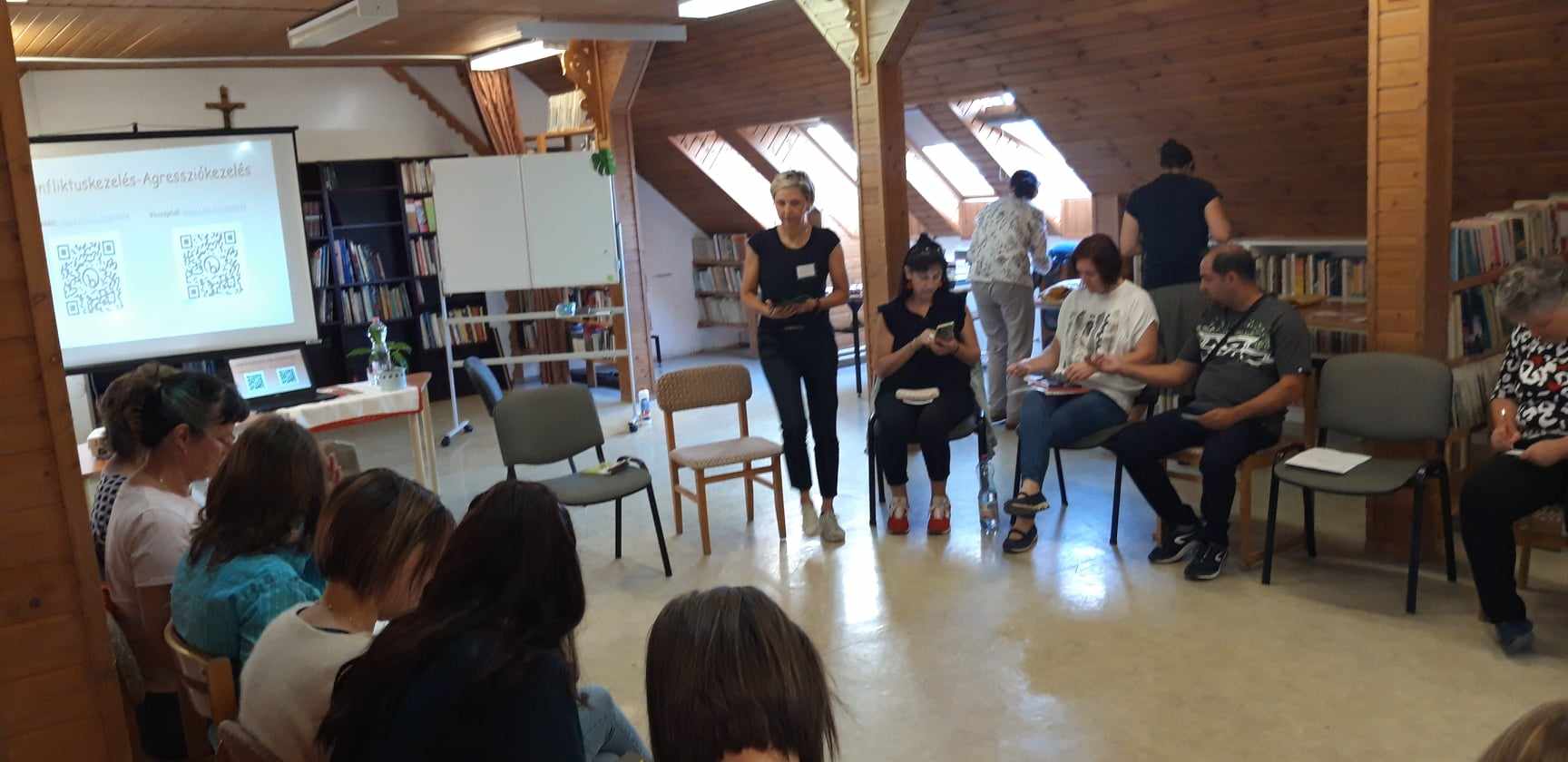 Magó Kinga mesterpedagógus, mentálhigénés szakember, coach és Jobbágy Borbála a Katolikus Pedagógia Intézet munkatársai tartottak iskolánk pedagógusainak konfliktus – és agressziókezelés címmel előadást.