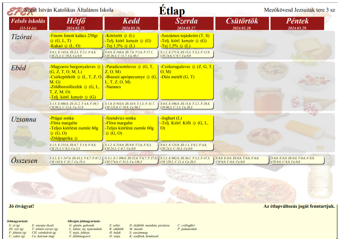 2023. szeptember 1-től a Szent István Katolikus Általános Iskola étkezési térítési díjai: