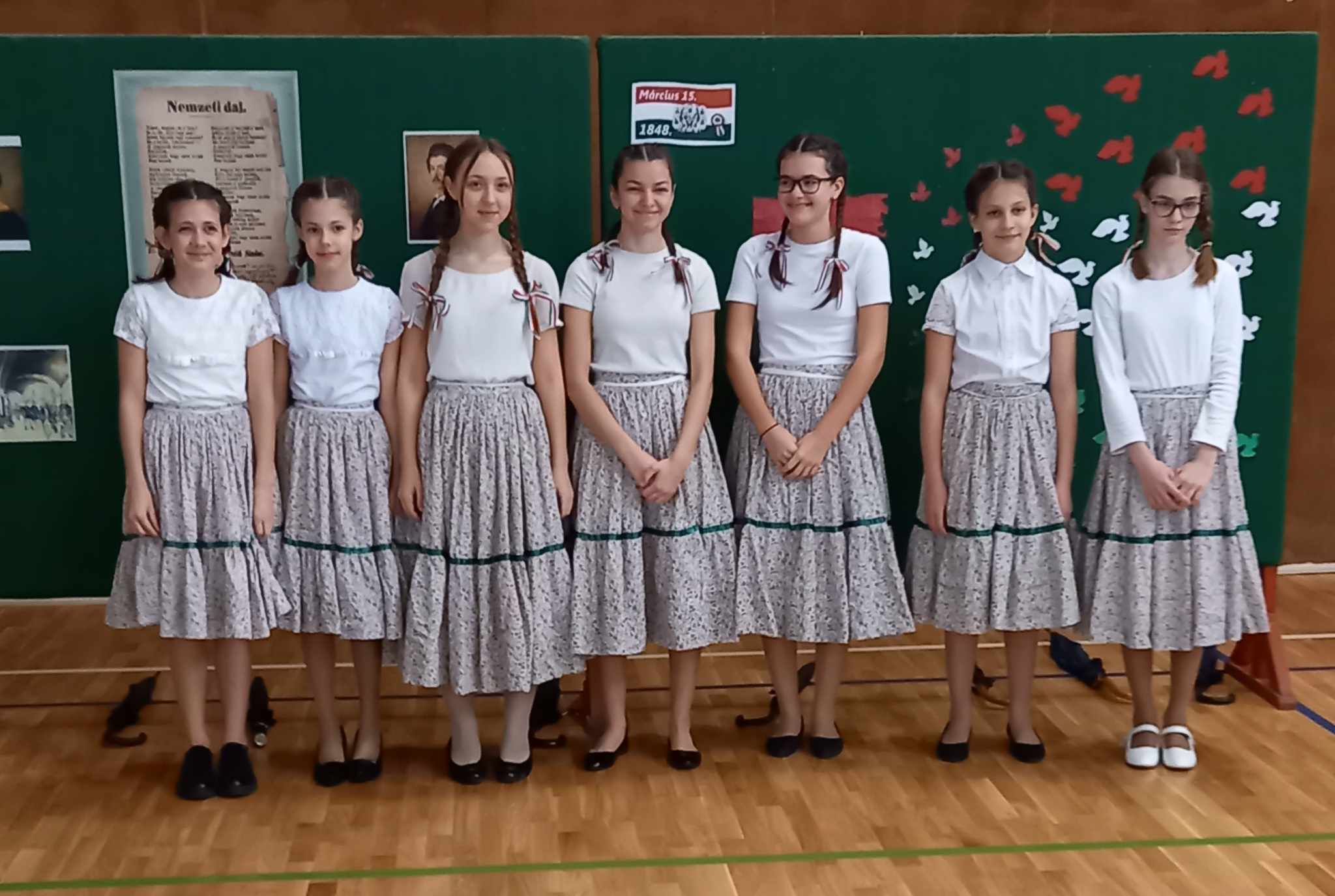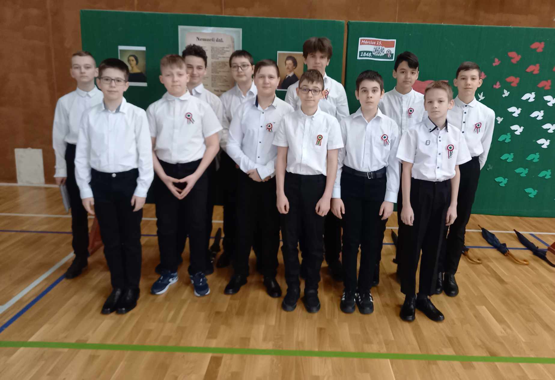 Iskolánkban március 14-én az első órában megemlékezést tartottunk 1848. március 15. tiszteletére. Az ünnepi műsort a 6.a és 8.b osztályos tanulók adták elő.