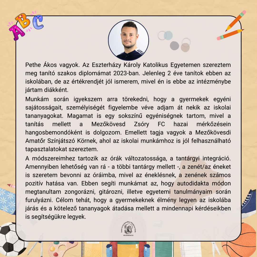 Harmadik osztályfőnök Szent István Katolikus Általános Iskola és Óvoda Közzétéve 2024-05-16 , Kiss Asztrik2024-05-16 Bemutatjuk a leendő 1.c osztály osztályfőnökét.