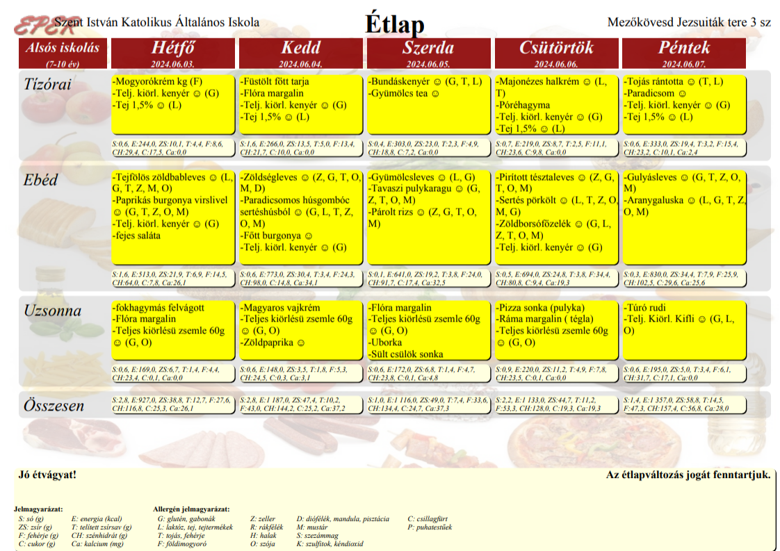 2023. szeptember 1-től a Szent István Katolikus Általános Iskola étkezési térítési díjai:
