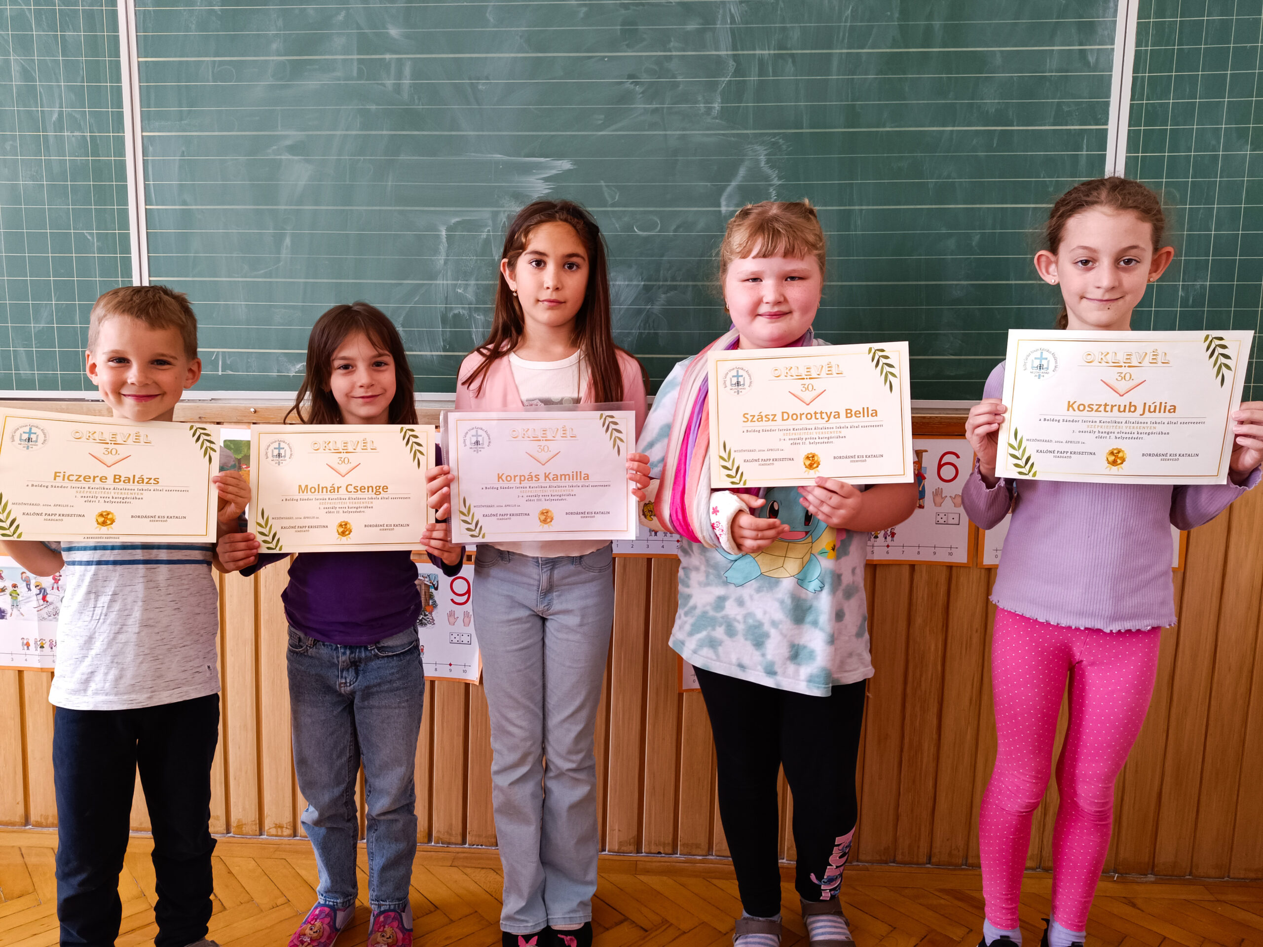 A Boldog Sándor István Katolikus Általános Iskola 2024.április 24-én rendezte meg 30. jubileumi Szépkiejtési versenyét. Iskolánkat az alábbi tanulók képviselték: