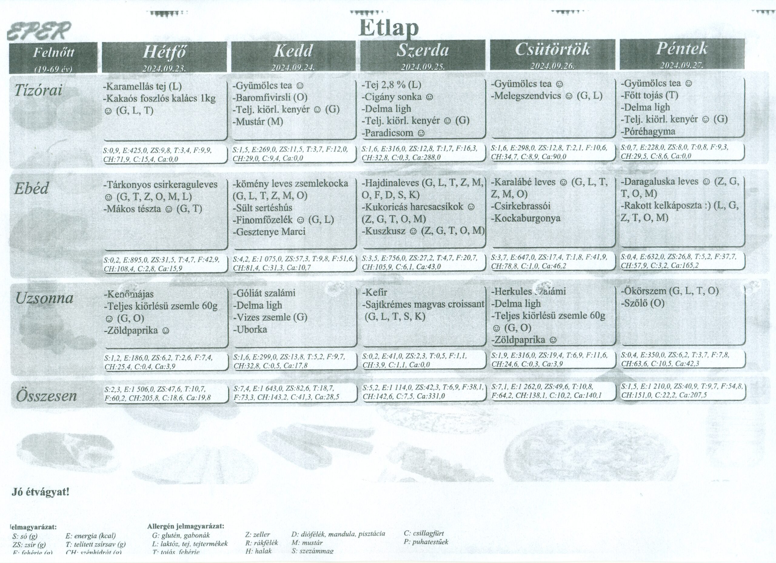 Kérjük az étkezési ill. elviteli szándékot hét elején, lehetőleg hétfőn jelezni, mert előfordulhat, hogy a későn leadott igényeket már nem tudjuk teljesíteni. Az étkezést az adott napon reggel 8:00-ig lehet lemondani.