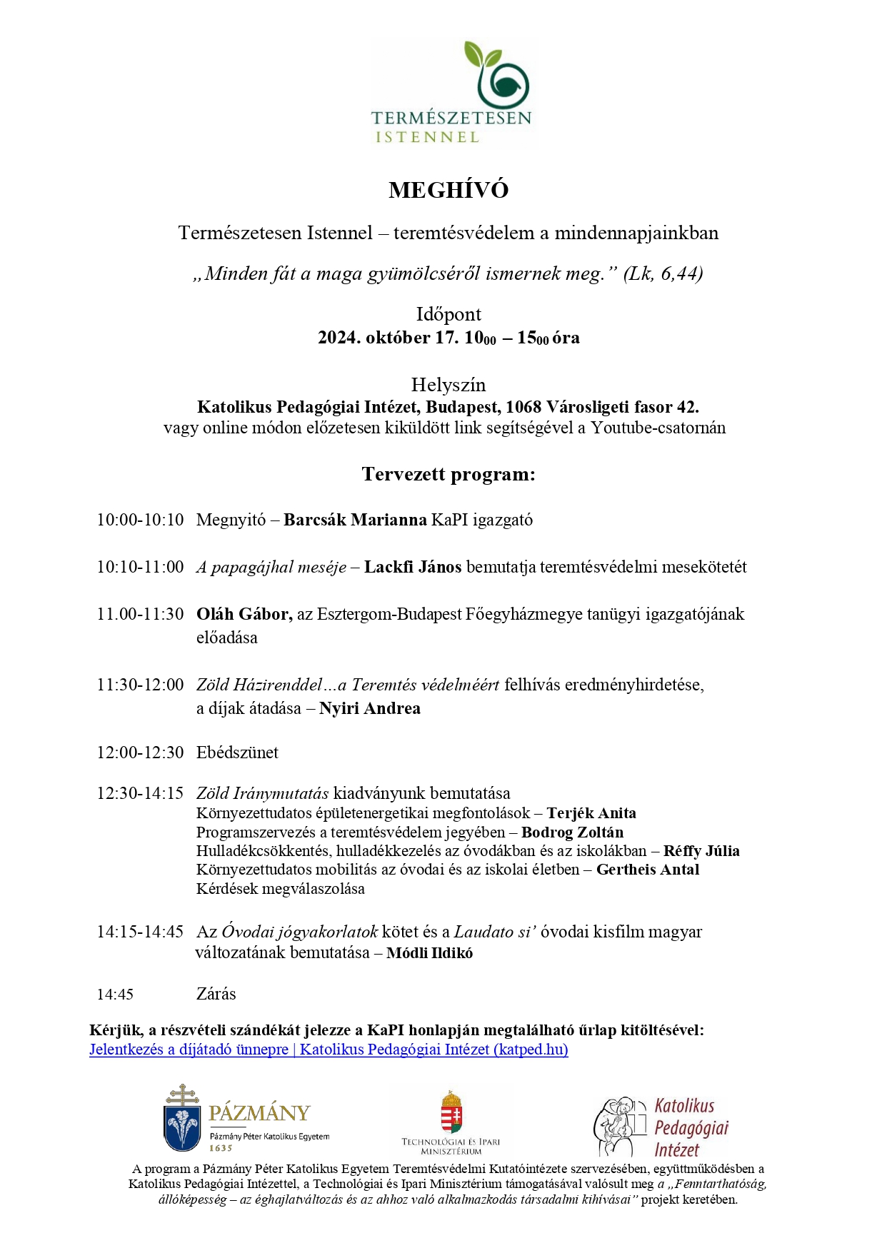 „Zöld Házirenddel a Teremtés védelméért” nyertes pályázata + Meghívó