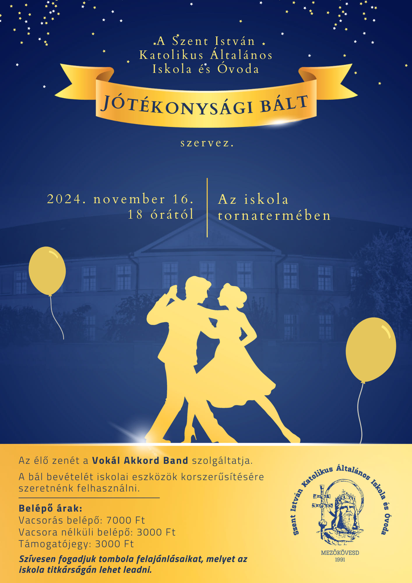 Idén is Jótékonysági bált szervez iskolánk 2024. november 16-án (szombaton) 18:00-tól, az iskola tornatermében.