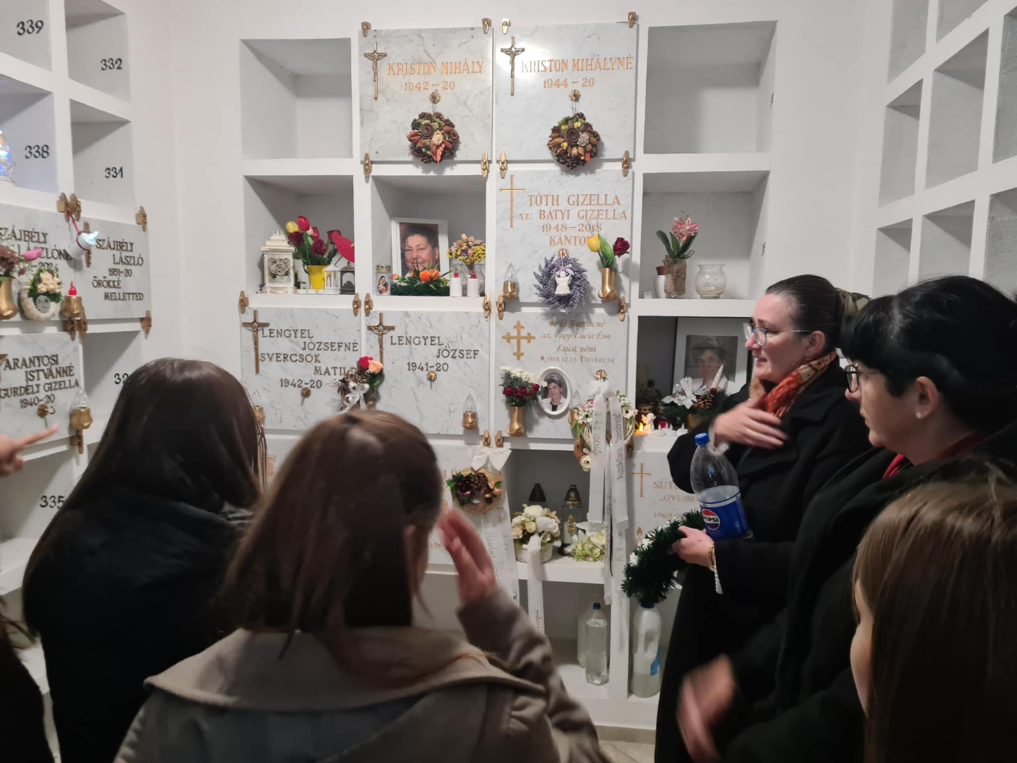 Október 22-én a 7. és 8. évfolyamos diákokkal ellátogattunk az altemplomba, valamint a mezőkövesdi és mezőnyárádi temetőbe. Virággal, mécsessel és imádsággal emlékeztünk iskolánk elhunyt pedagógusai, papjaink valamint városunk hírességeinek sírjánál.