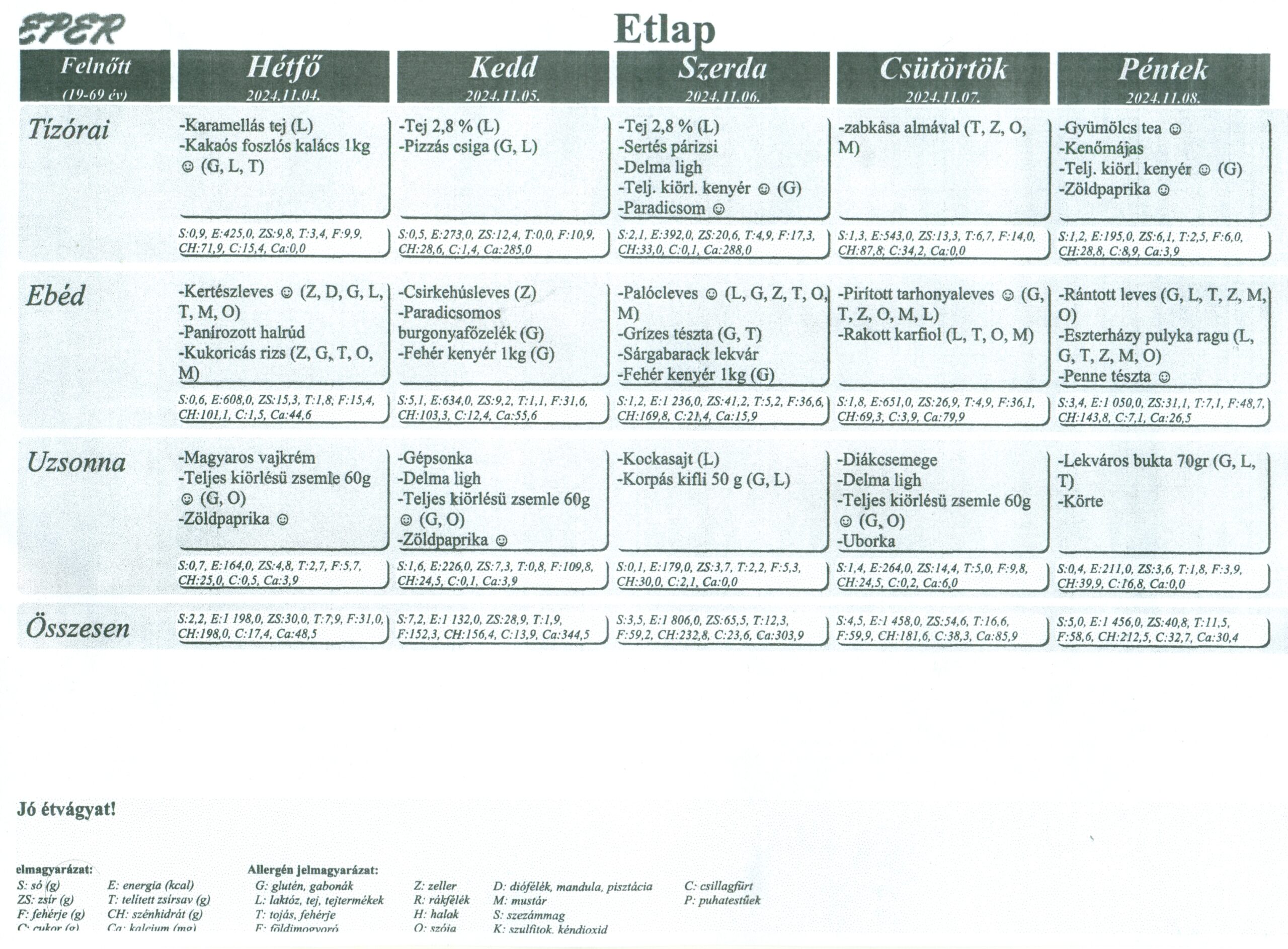 Az ételek allergén összetevőket tartalmazhatnak /glutén, tojás, szója, tej, diófélék, zeller, mustár, hal, szezámmag/