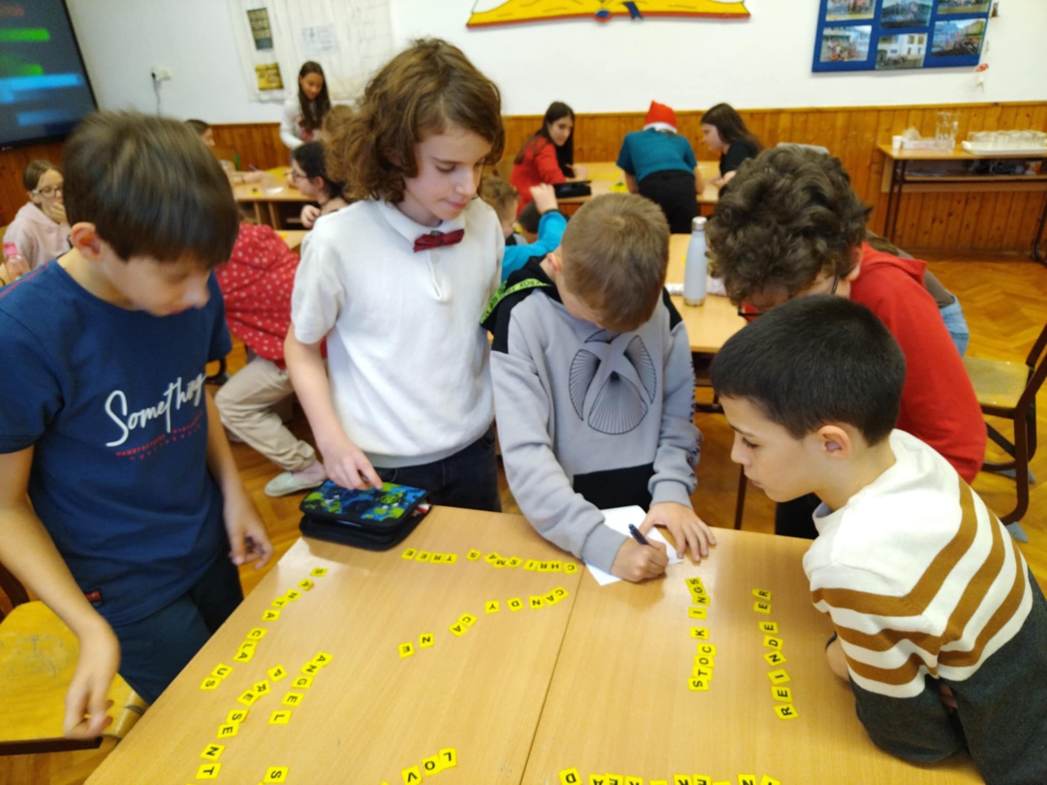 Dec.11-én egy játékos vetélkedőre hívtuk a felsős angolosokat. A délután vidám hangulatban telt. 8 feladatot kellett megoldaniuk a bátor vállalkozóknak.