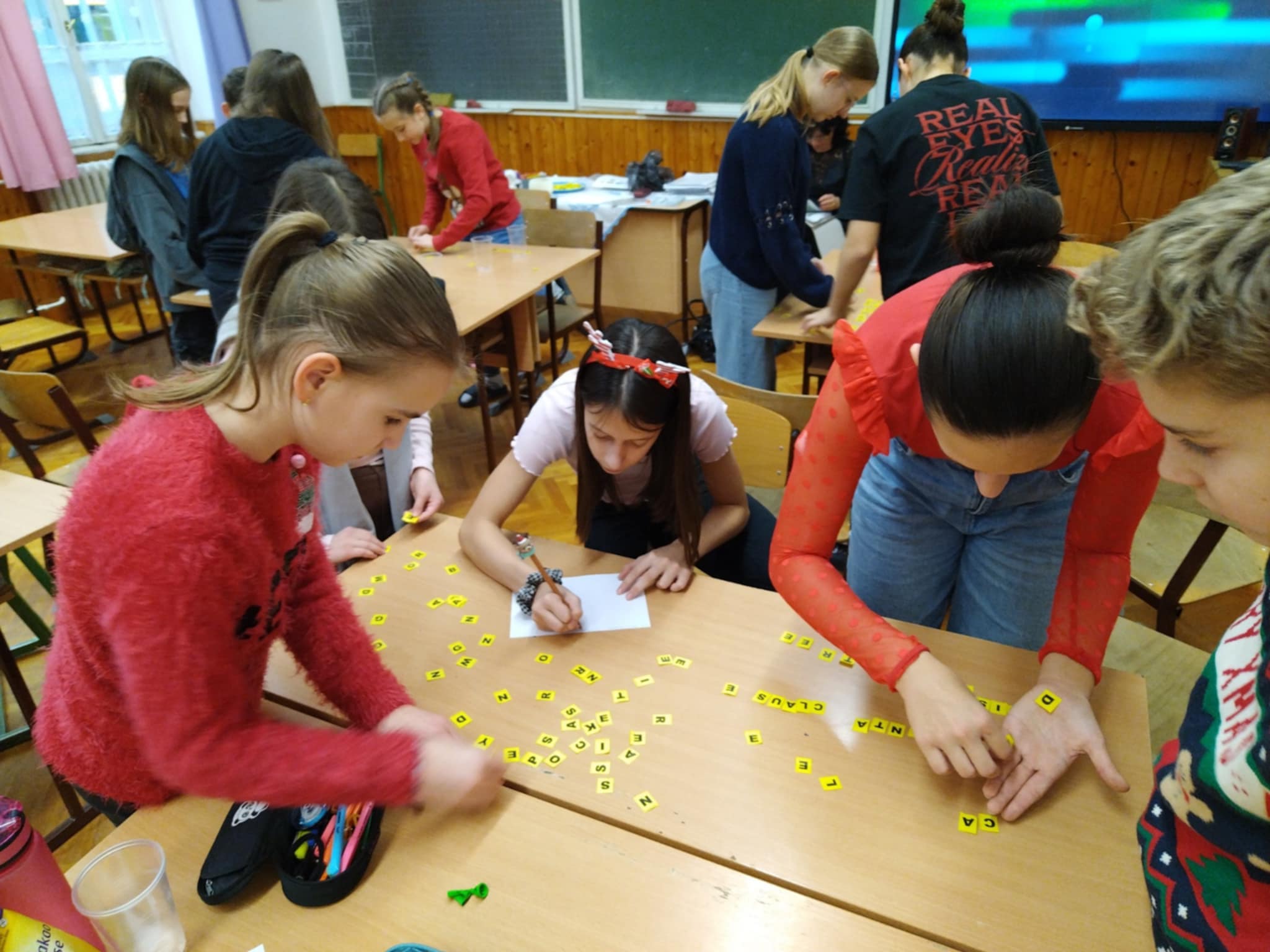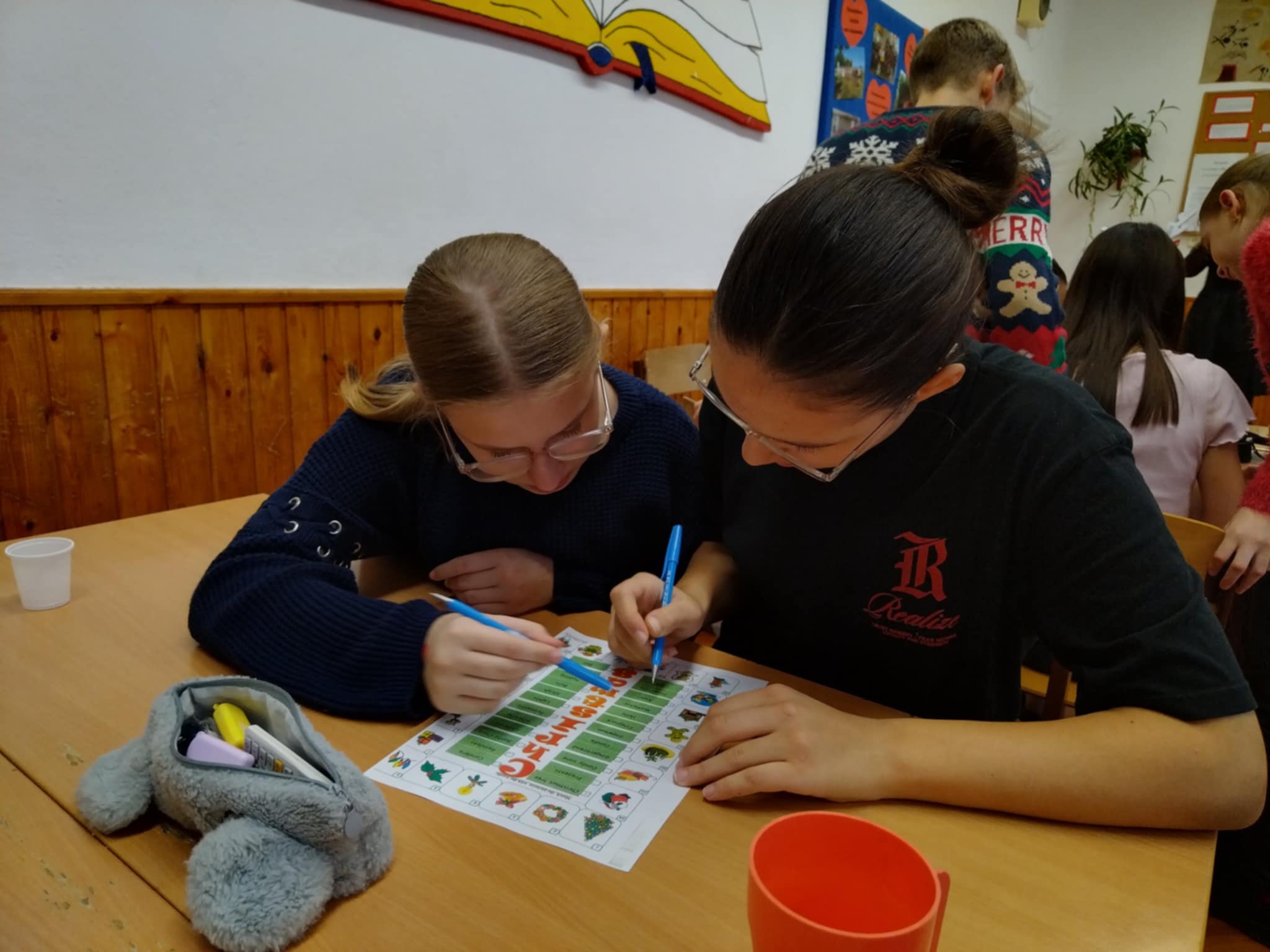 Dec.11-én egy játékos vetélkedőre hívtuk a felsős angolosokat. A délután vidám hangulatban telt. 8 feladatot kellett megoldaniuk a bátor vállalkozóknak.