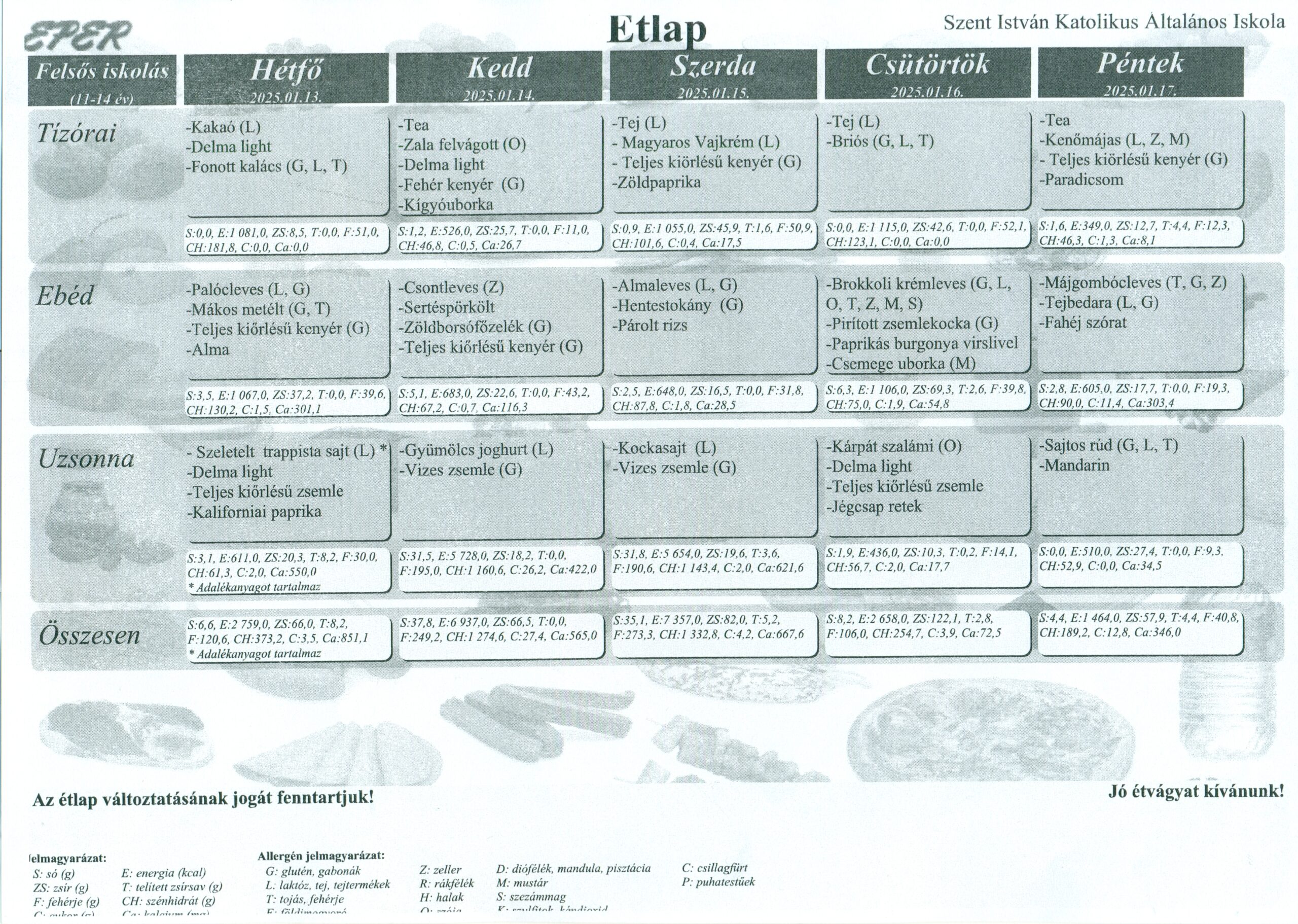 2024. szeptember 1-től a Szent István Katolikus Általános Iskola étkezési térítési díjai: