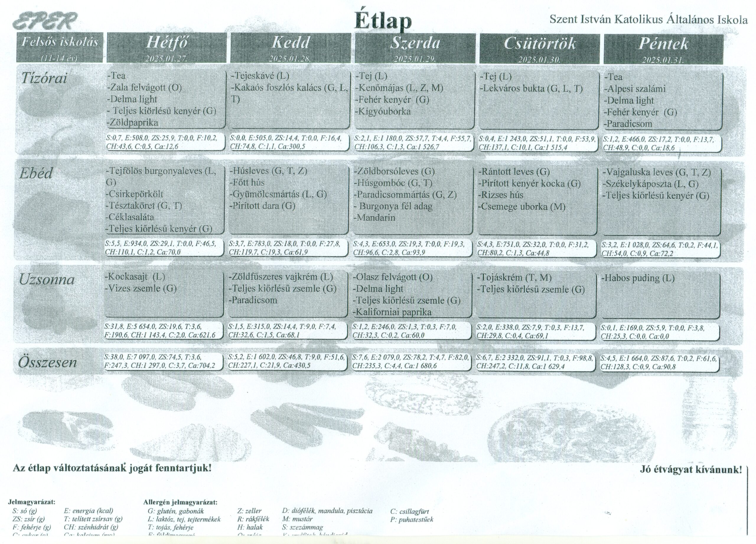 2024. szeptember 1-től a Szent István Katolikus Általános Iskola étkezési térítési díjai:
