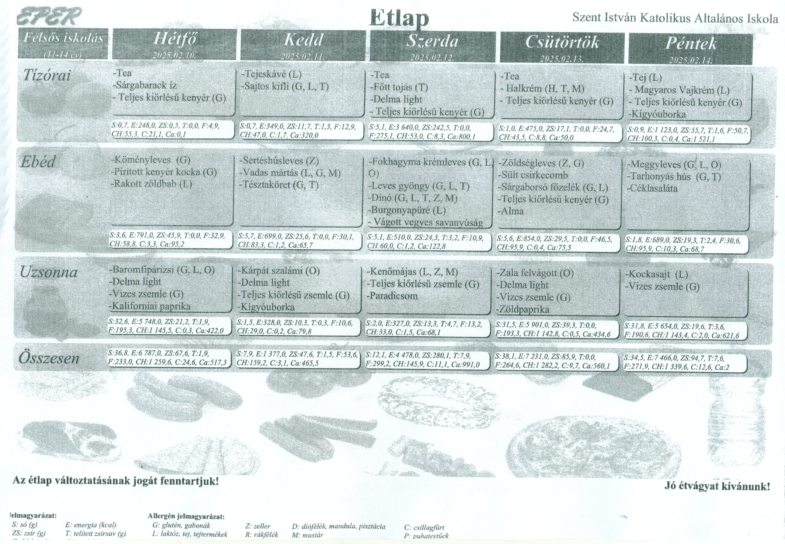 2024. szeptember 1-től a Szent István Katolikus Általános Iskola étkezési térítési díjai: