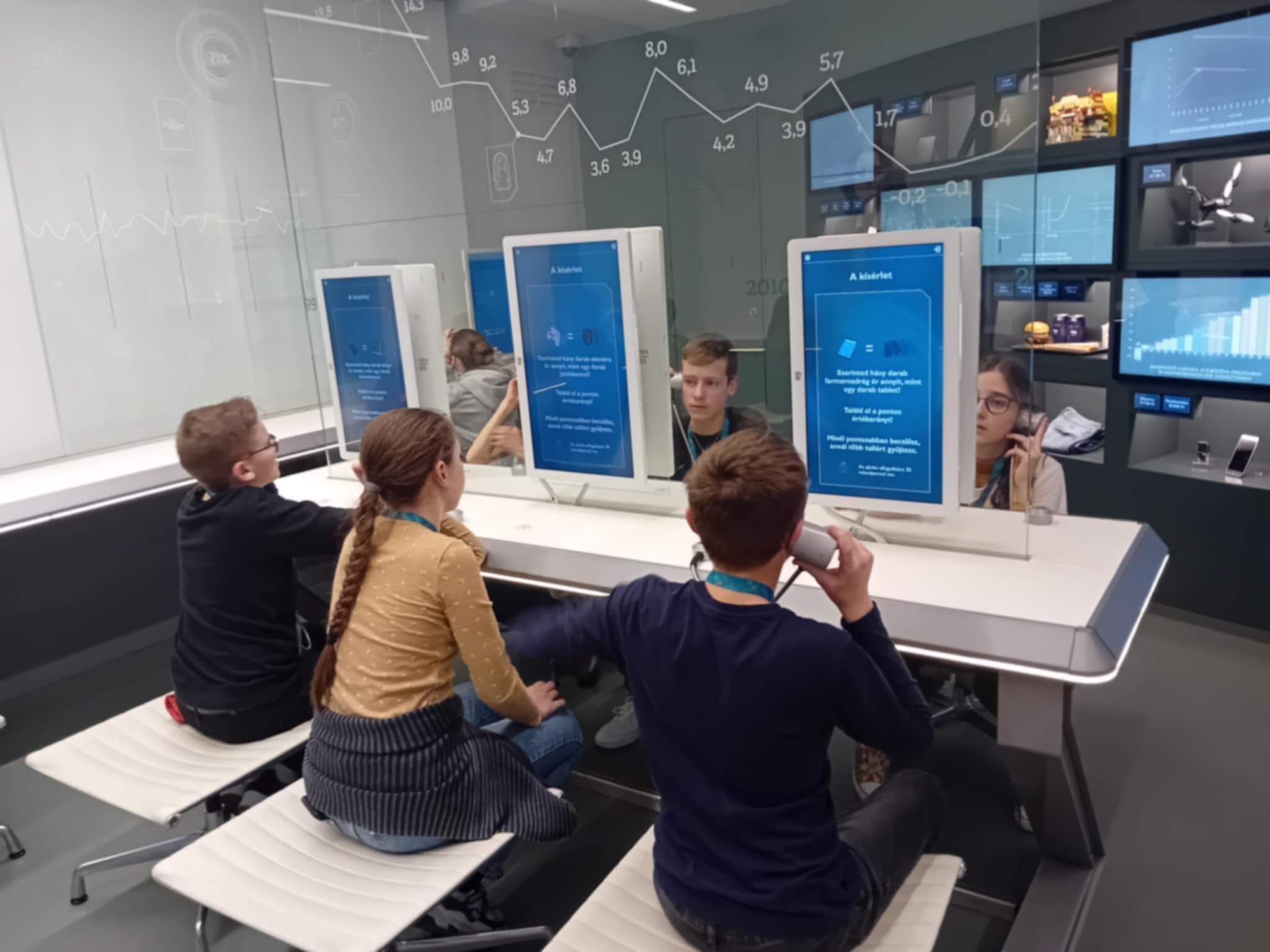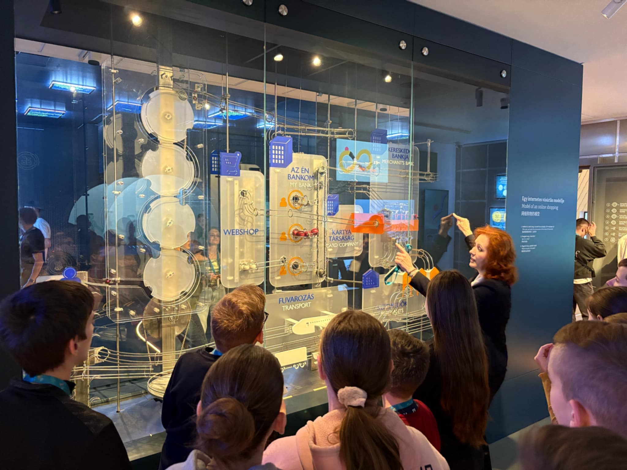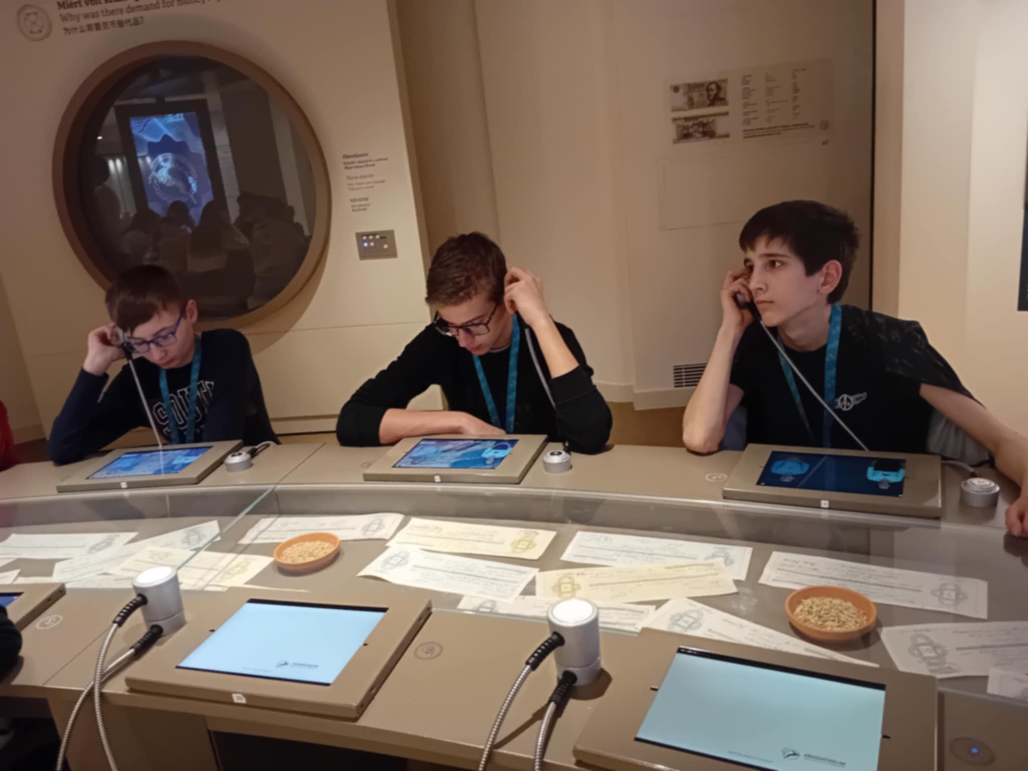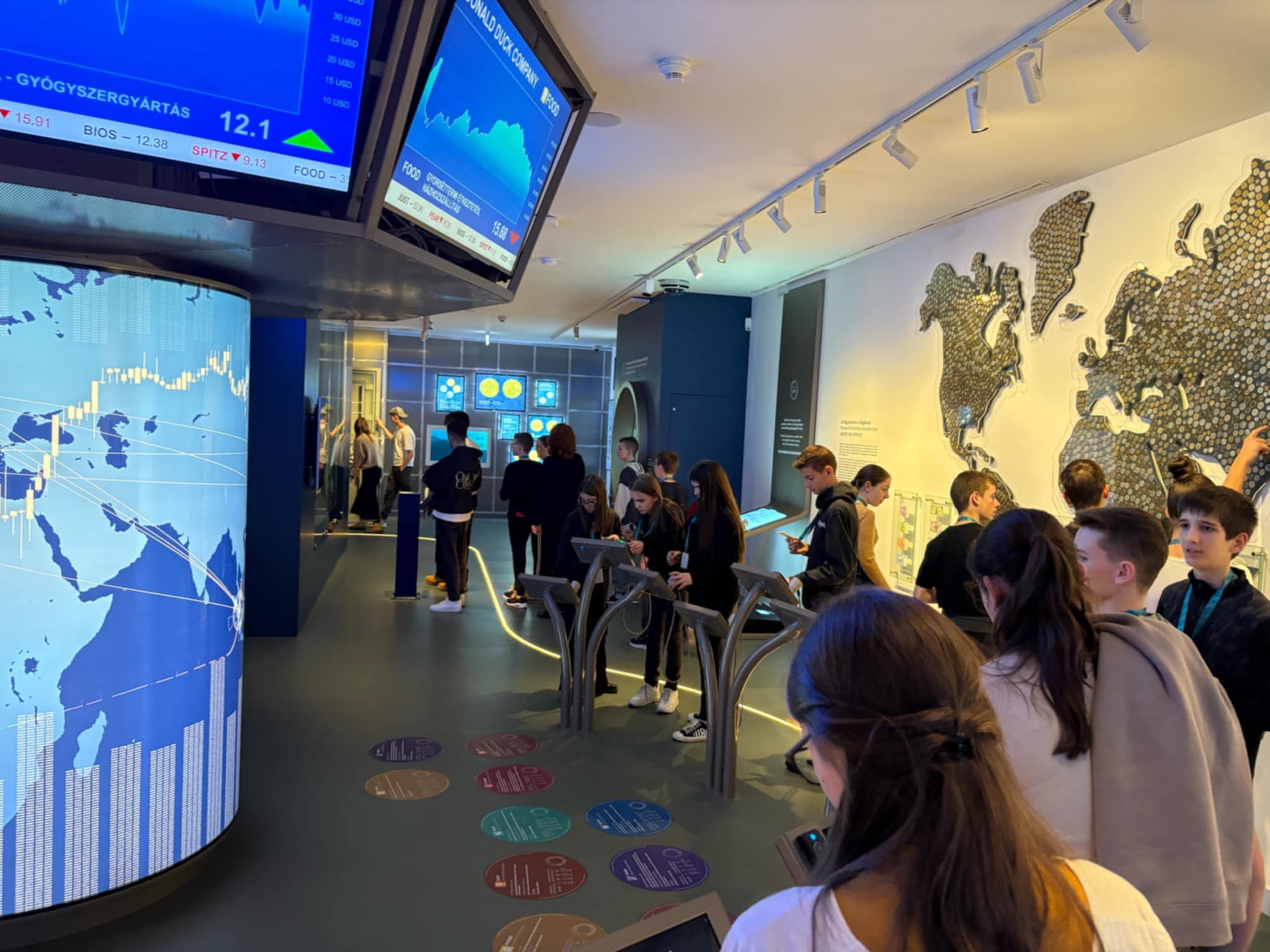 A Pénzmúzeumban a gyerekek két csoportba rendeződtek, így az azonos korosztályú diákok külön-külön élvezhették a különféle programokat. A múzeumban az állandó kiállítások mellett, különféle aktuális témákat feldolgozó állomásokon próbálhatták ki magukat a gyerekek. Az aktuális kiállítás, melyen a csoportunk is részt vett a pénz útja nevet viseli. Az ingyenesen megtekinthető kiállítás első állomása az aranybánya, ahol a nemesfém bányászathoz használt eszközökkel ismerkedhettünk meg. A következő állomáson a pénz bevezetése előtt használt értékmérőket, mint fizetőeszközöket csodáltuk meg pl. kagyló, só, menyét. Ezek után a pénz formai változásait figyelhettük, hogyan változott történelmünk során, egészen Károly Róberttől napjainkig. Majd a bankok fontossága következett, illetve annak bemutatása milyen lenne bank nélkül az élet. A negyedik állomáson a tőzsdét mutatták be, a gyerekek megtudhatták mit jelképez a medve, illetve a bika a tőzsdén. Az utolsó állomáson különféle kincseket tekinthettünk meg és súlyemelésként egy 400 millió forint értékű aranytömböt is megpróbálhattunk felemelni, de különös élmény volt a robottal való társalgás is.