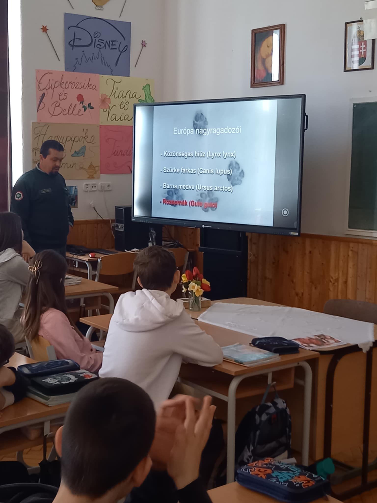 Továbbá Kleszó Andrást, a Bükki Nemzeti Park Igazgatóság természetőrét felkértük, hogy a felső tagozatos diákoknak előadást tartson a biodiverzitás témakörében.