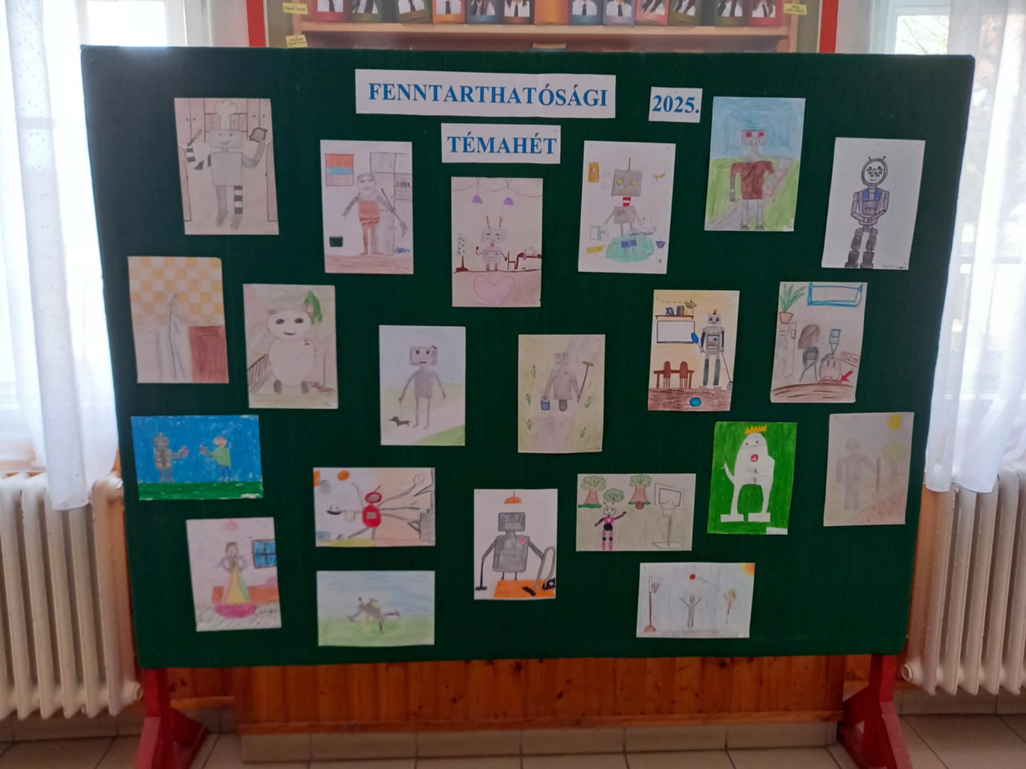 A programhoz kapcsolódóan a 6. osztályos tanulók rajz órán a mesterséges intelligencia témakörében rajzoltak.