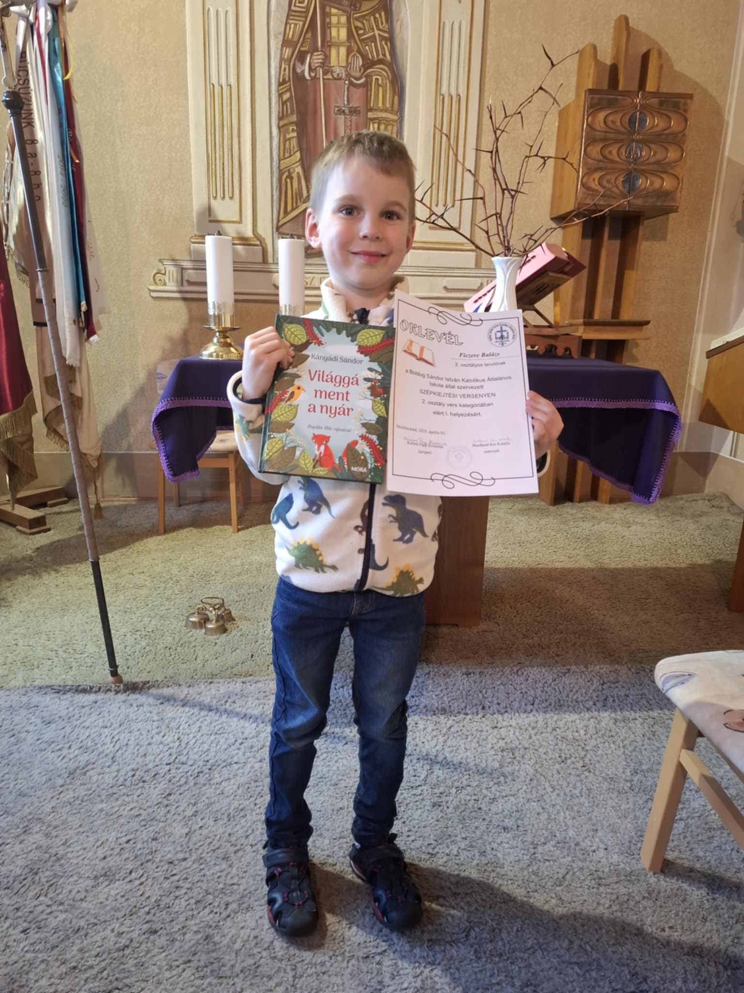 A mezőnyárádi Boldog Sándor István Katolikus Általános Iskola által szervezett szépkiejtési versenyen Ficzere Balázs 2.c osztályos tanuló, vers kategóriában I. helyezést ért.