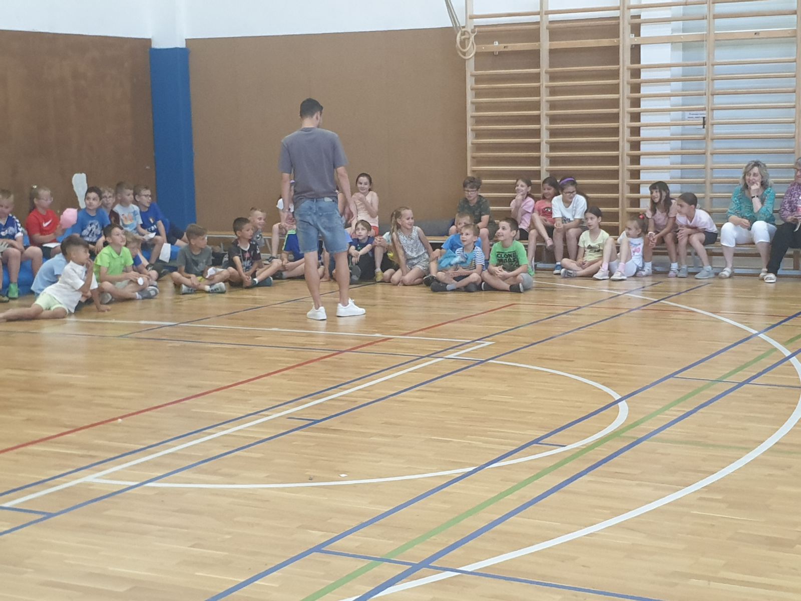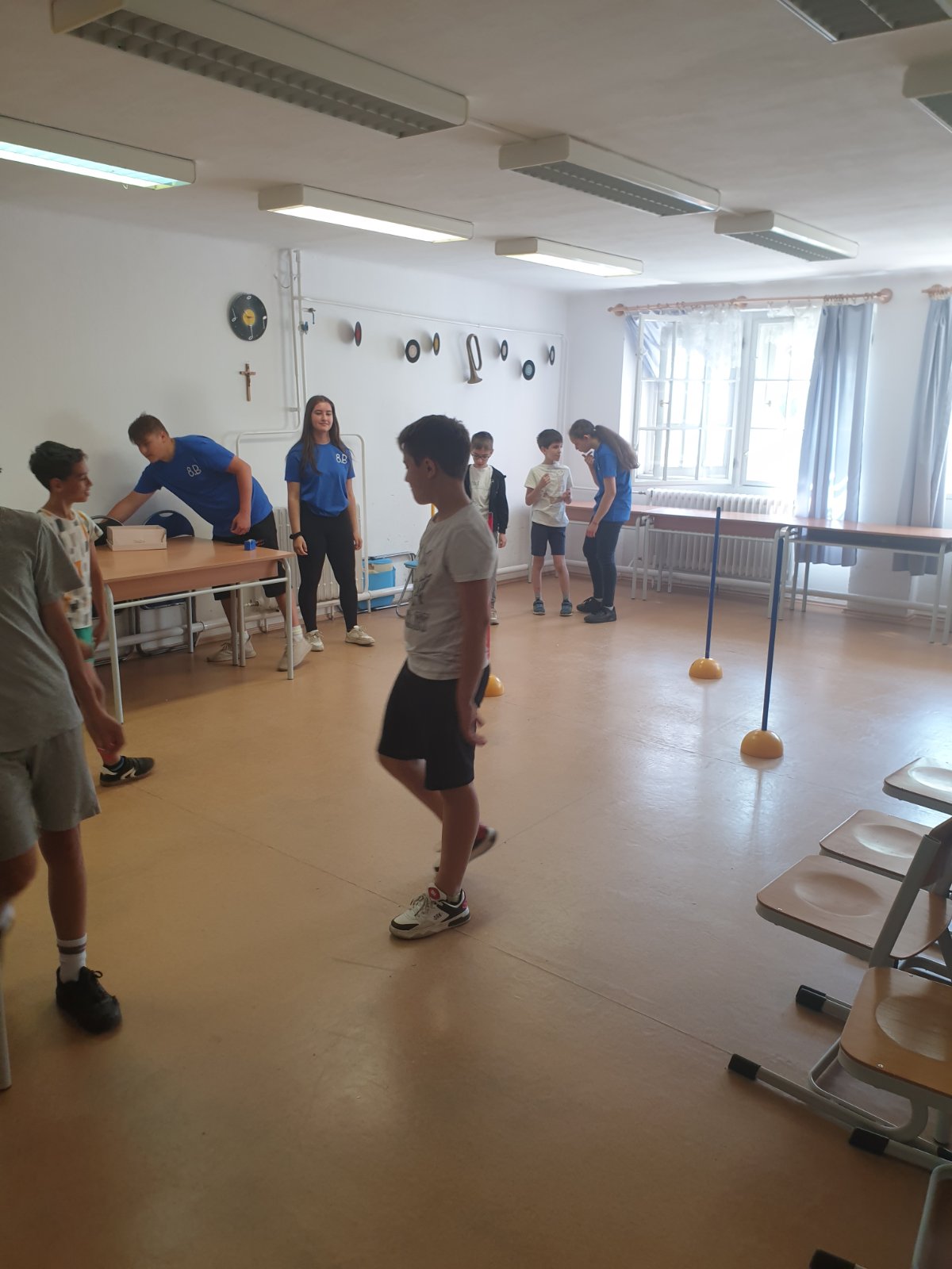 A napot egy kis tornával kezdtük lenn az udvaron. Majd az iskola tisztasági verseny eredmény hirdetése következett, a „tiszta, rendes osztályok” vehették át a jutalmukat, az aranyseprűt, ezüstseprűt, bronzseprűt, amit a tanterembe lehetett elhelyezni. Természetesen minden nyertes osztály kapott jutalmul egy kis édességet.