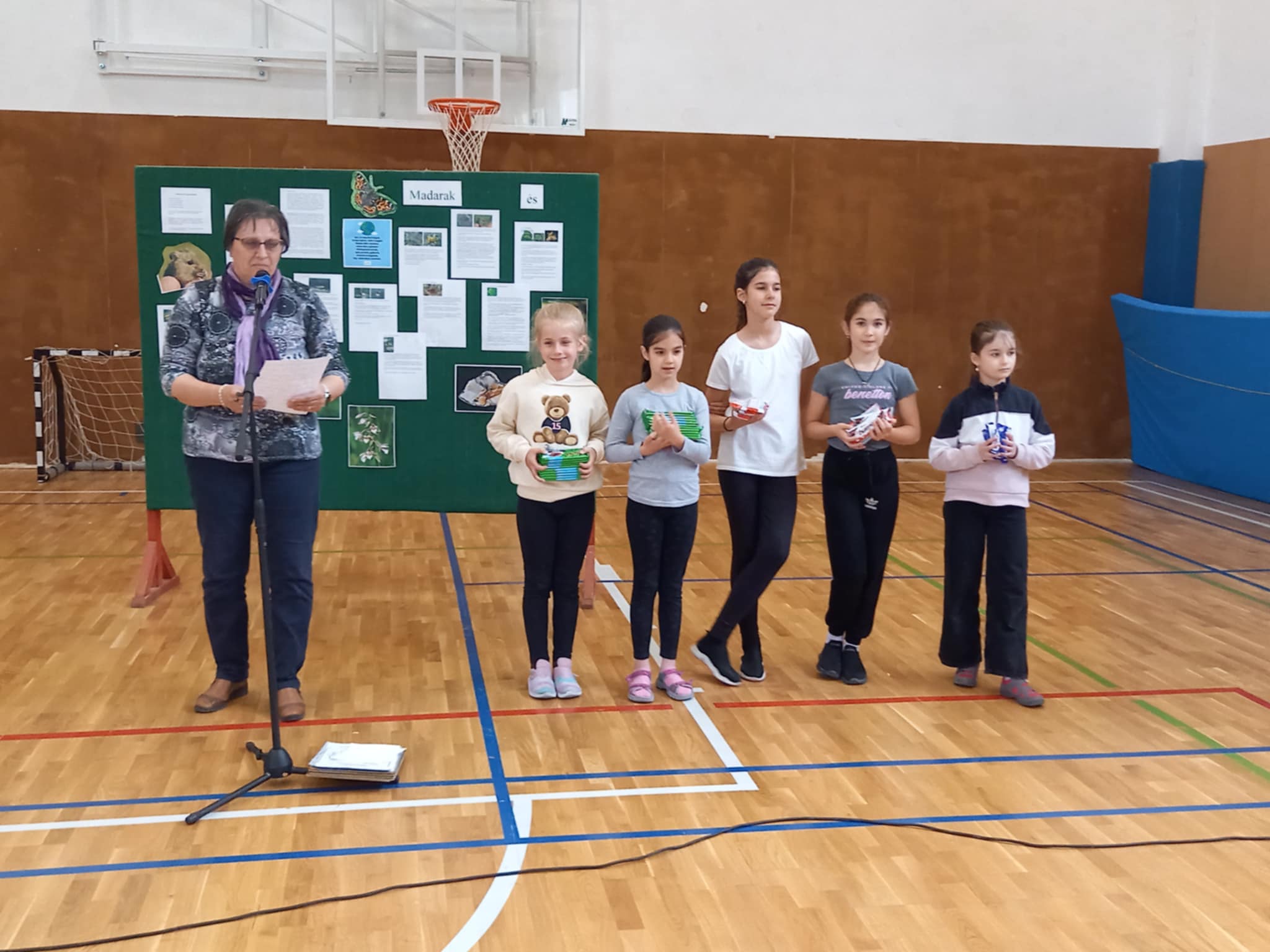 Az alsós csapatok az iskola udvarán, 4 állomáson, a felsős csapatok az iskola melletti parkban teljesítették az 5 felállított állomáson a feladatokat. Minden feladat a madarakhoz, az év állataihoz, növényeihez, ásványához, fákhoz kapcsolódott.