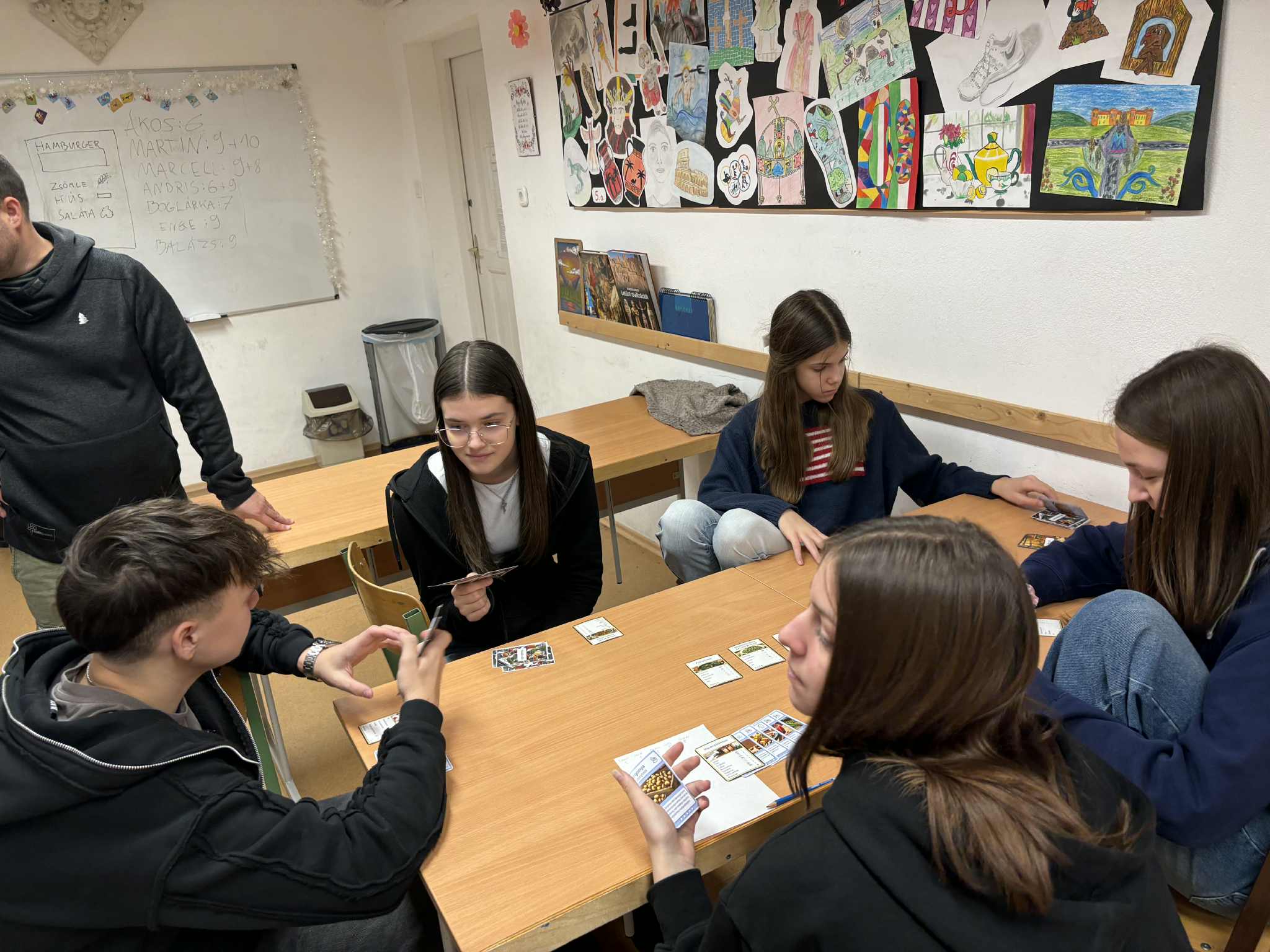 Az előadó az iskolának adományozta a kártyacsomagot, és a játékszabályt is.