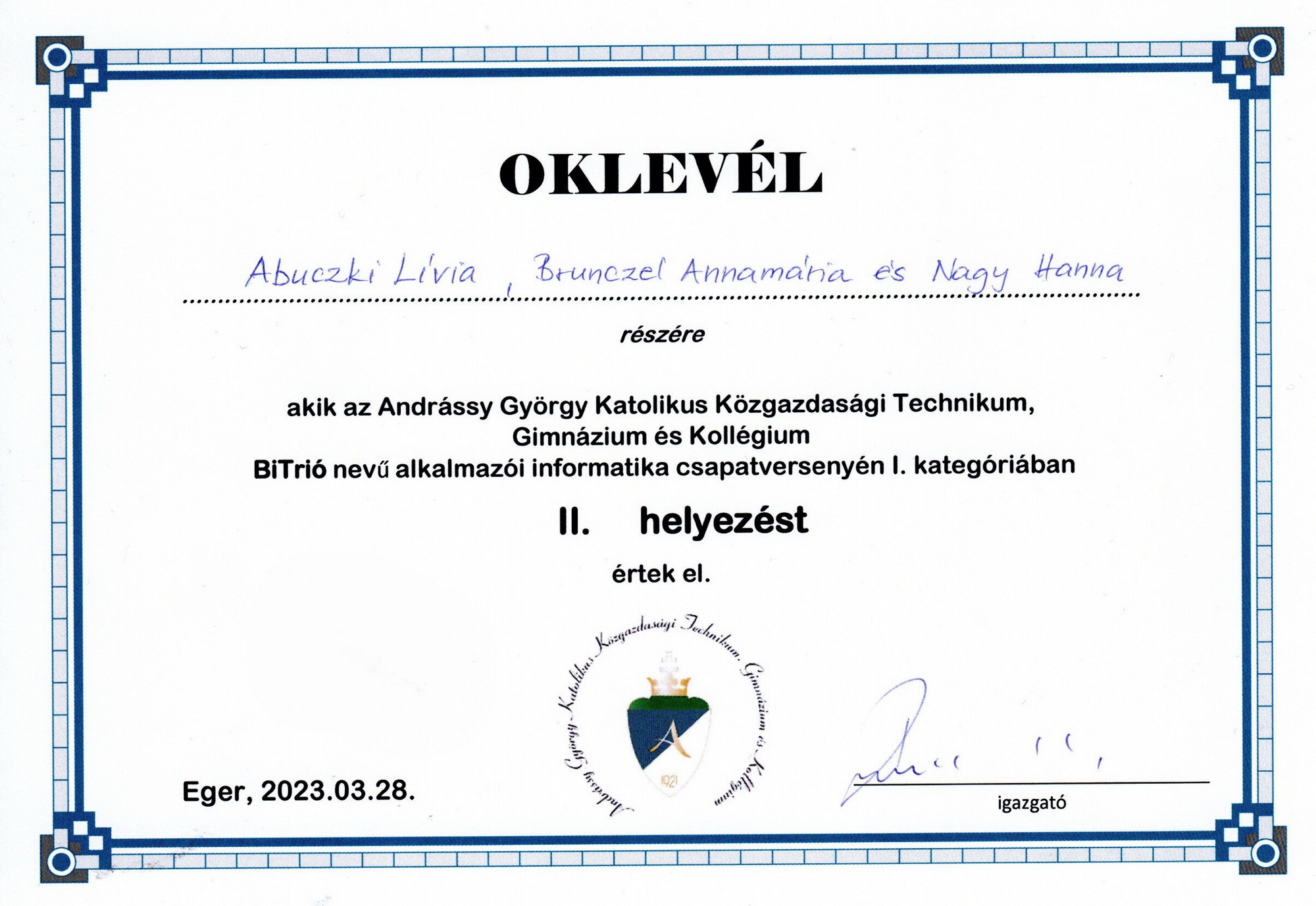 Bollók Róza 7.b osztályos tanuló beszámolója: