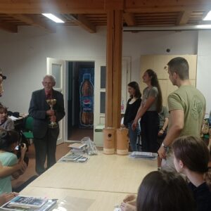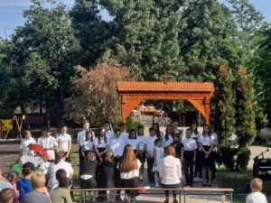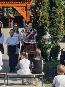 Délelőtt meglátogattuk testvériskolánkat, a csíkrákosi Cserei Mihály Általános Iskolát. Itt rövid műsorral kedveskedtünk, bemutattuk városunkat és egyházi énekeket énekeltünk. Ezután a lányok — fiúk egyaránt fociztak.