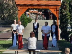 Utolsó állomásunk Farkaslaka volt, ahol Tamási Aron szülőházánál helyeztünk el koszorút. Késő este érkeztünk meg szálláshelyünkre, a székelyudvarhelyi Hintó Panzióba, ahol finom csorba levessel vártak minket.