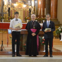 A 2021/22-es tanévet záró Te Deum-on a Jászapáti Kisboldogasszony templomban iskolánk két tanulója, Bollók Máté István (8.a) és Lázár Barnabás (8.a) példamutató hitéletükért, templomi szolgálatukért és tanulmányi eredményükért Dr. Ternyék Csaba érsek atyától érseki dicséretet vehettek át.