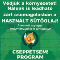 Iskolánkban 05.02-tól zárt csomagolásban leadható a használt sütőolaj az udvar felőli bejáratnál a karbantartó műhelynél.