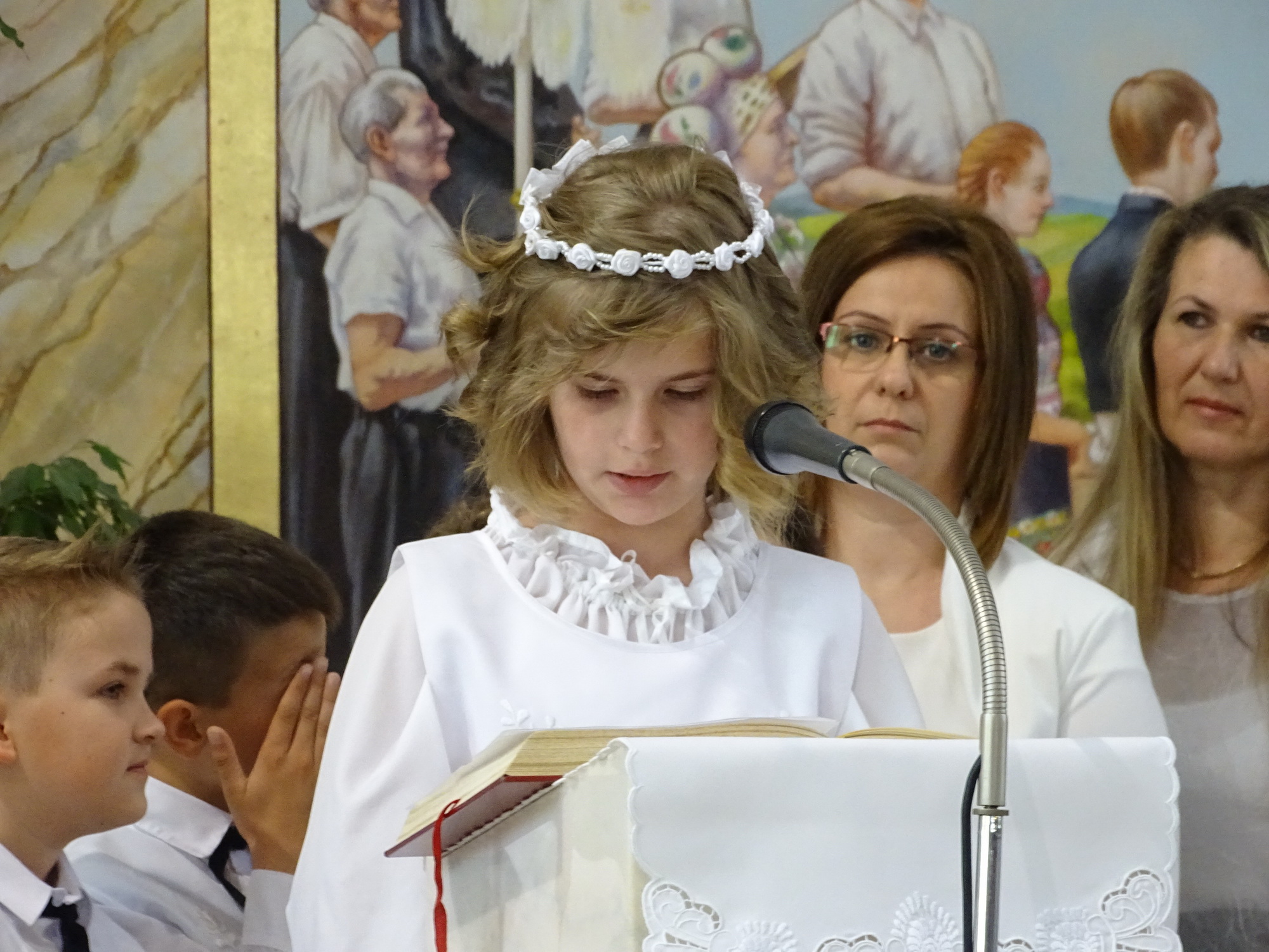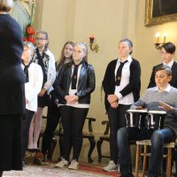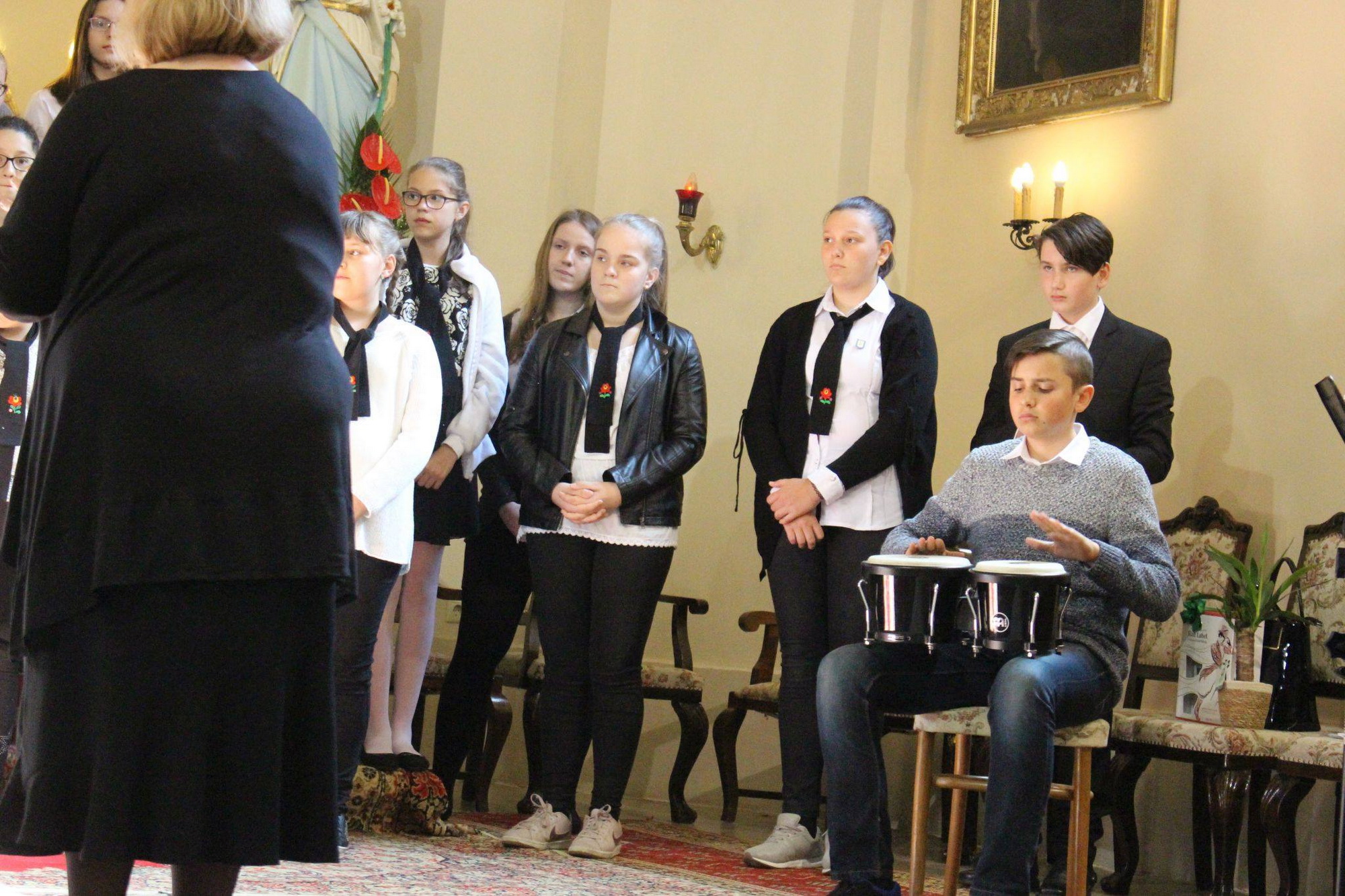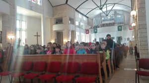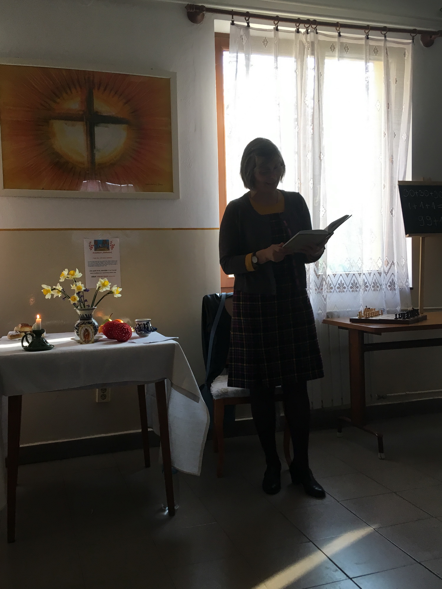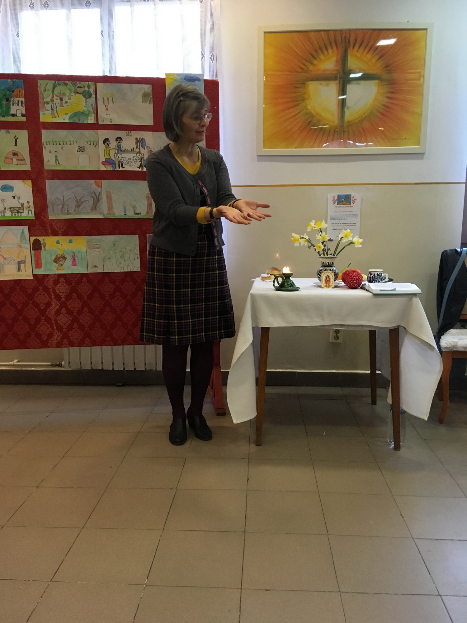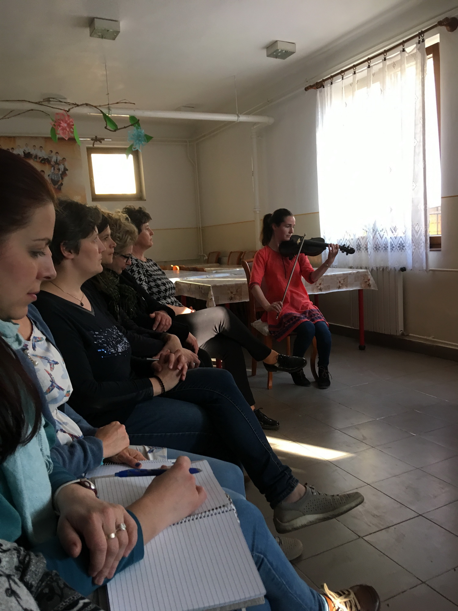 A mese hallgatás előtt Bokor Anna tanárnő hegedűjátékával, énekkel, és közös imával hangolódhattunk át a rohanó hétköznapok feladataitól a befelé fordulás csendesebb mezejére.