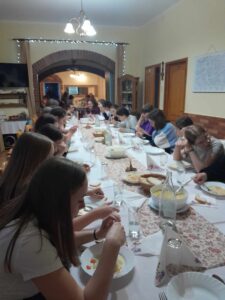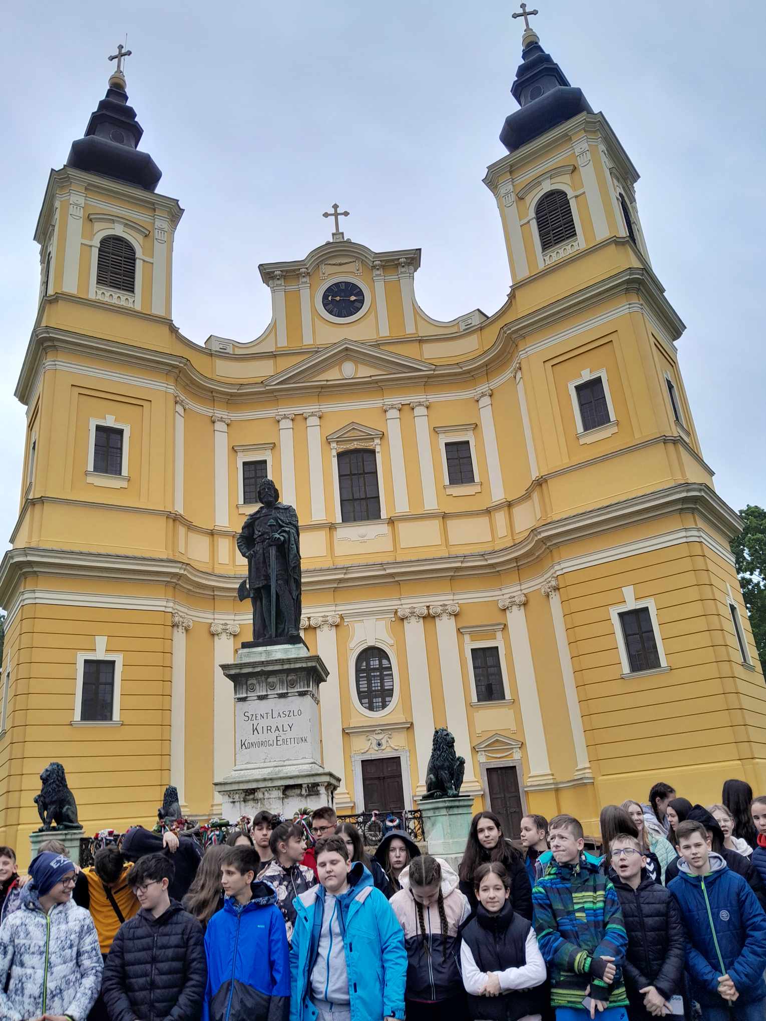 Korán reggel indultunk, mert nagyon hosszú út állt előttünk. Többször megállítottak, a határon, az autópályán, tehát az utazás nem volt zökkenőmentes. Az első megállóhelyünk Nagyvárad volt, ahol a Szent László szobrot tekintettük meg. Onnan Kolozsvárra mentünk, ahol felkerestük Kós Károly és Dsida Jenő sírhelyét. Egy hatalmas gótikus stílusú templomot és Mátyás király szülőházát is megnéztük. Kolozsvárról Szovátára utaztunk, ahol a Szent József Gyermekotthont látogattuk meg. Részt vettünk egy előadáson, ahol elmesélték az életüket. Este értünk a székelyudvarhelyi szállásunkra, ott finom vacsorával vártak minket.