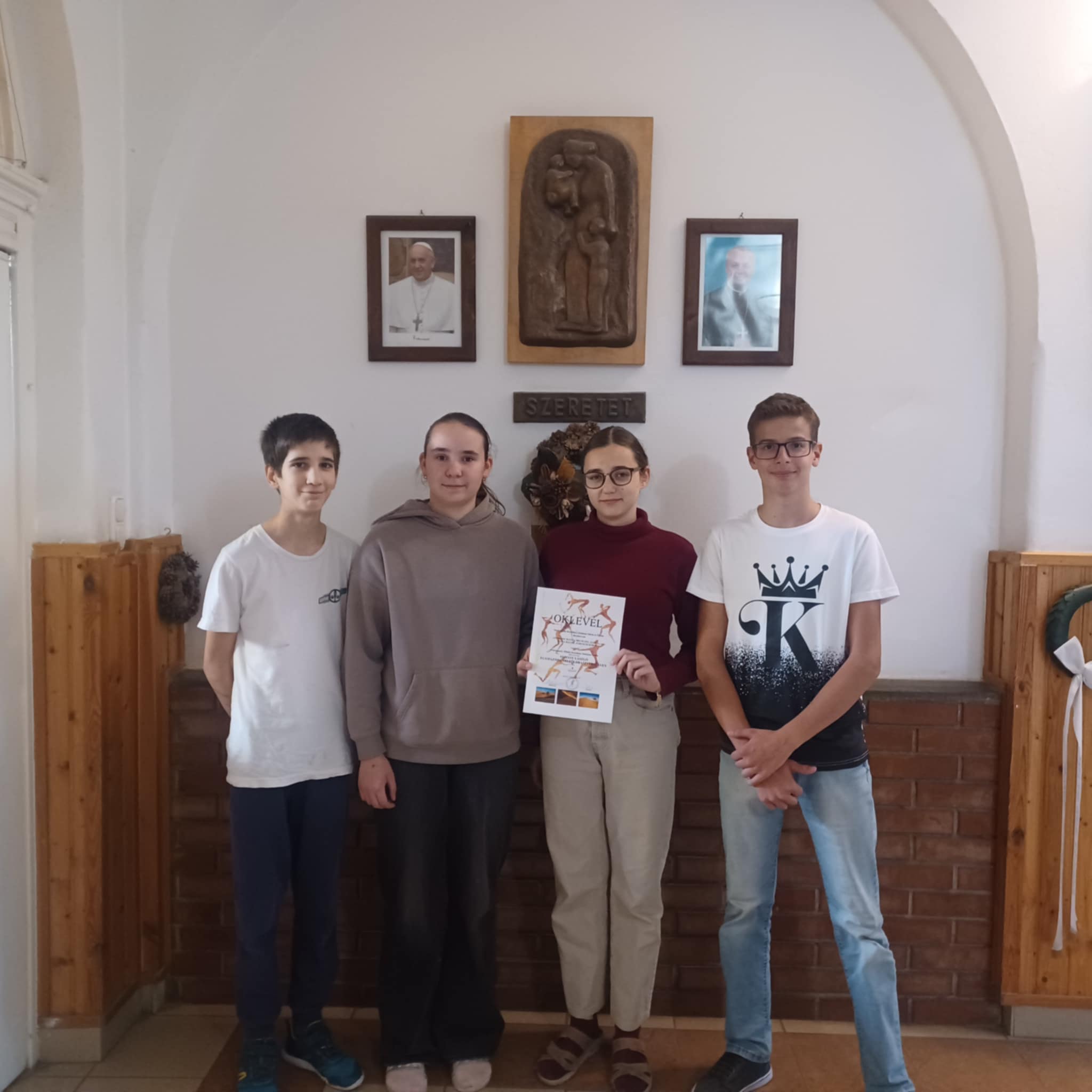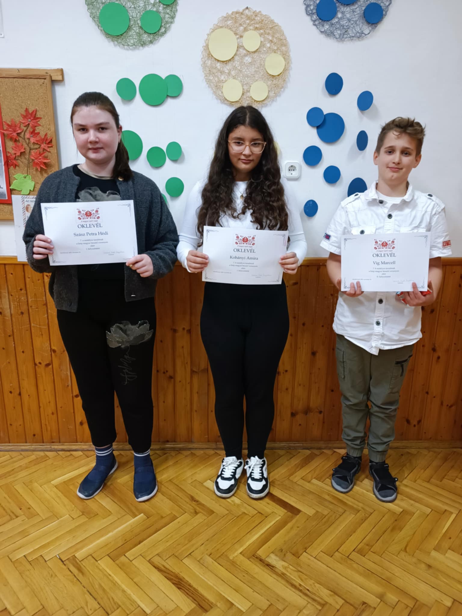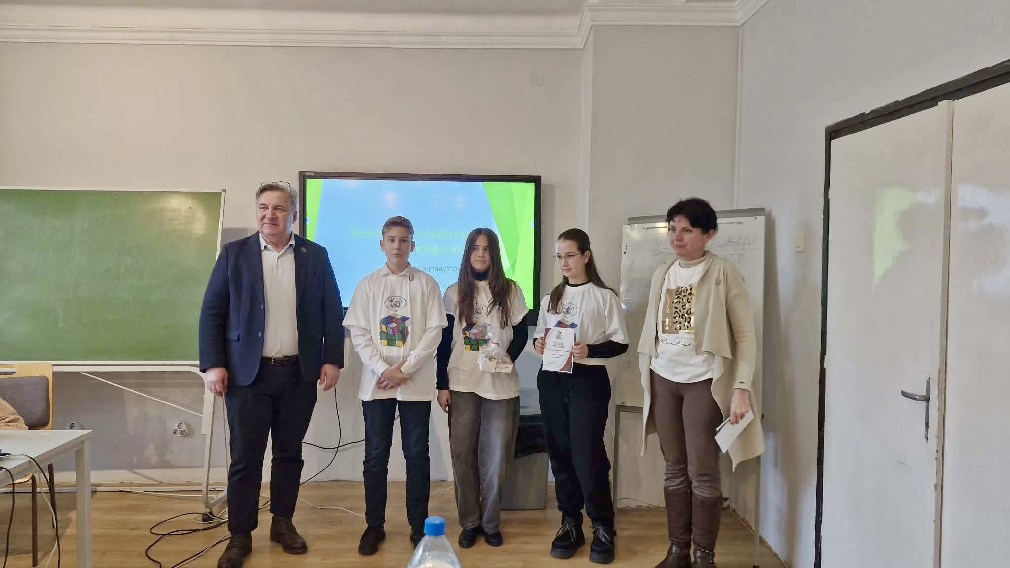 8. osztályosok: Krasznai Sára, Jacsó Bianka, Szecskó Boglárka, Juhász Áron, Kleszó Ákos, Vékony Balázs. Felkészítő tanárok: Gáspárné Ali Júlia Gyenes Andrea Kelenföldi Zsófia