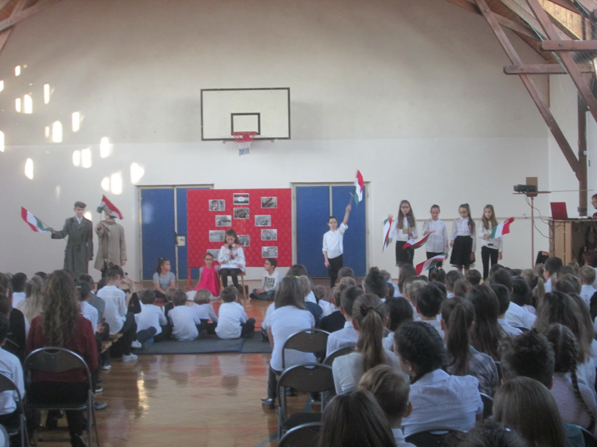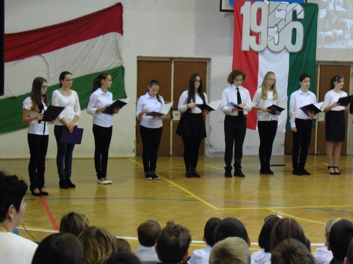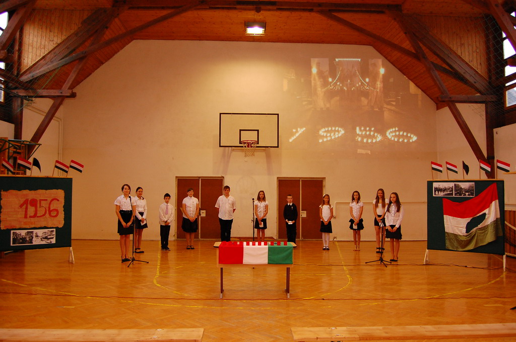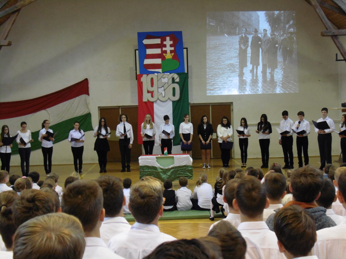 2013. október 22-én reggel iskolakezdéskor (8 óra) iskolánk tornatermében emlékeztünk 1956-ra. A műsort a 6.b osztály tanulói adták elő, akiket Jacsóné Molnár Gyöngyi tanárnő készített fel. A műsort a korról szóló videók színesítették.