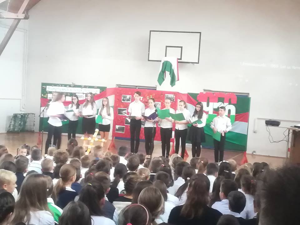 2019. október 22-én iskolai ünnepség keretében emlékeztünk meg az 1956-os forradalom eseményeiről. A műsort – amelyben a 6.a és a 8. osztályos tanulók szerepeltek – Vasasné Máté Magdolna tanárnő szervezte.